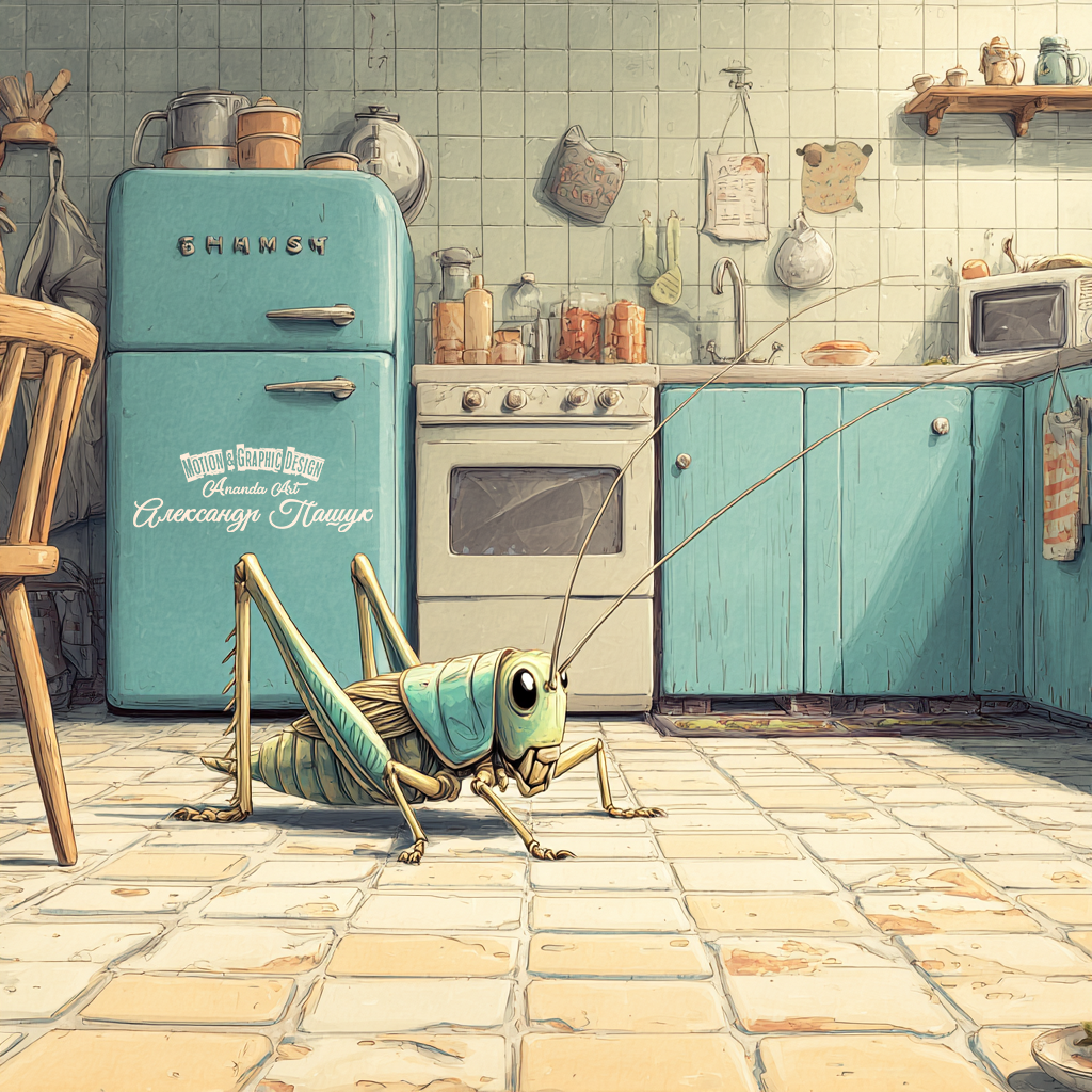 Гостем он оказался не требовательным, но активным. Первую ночь стрекотал в ванне, на следующую перебрался в кладовку, а на третью уже шастал по всему дому. Наши слабые попытки найти его и выпустить на улицу не увенчались успехом. Пока он сам не вышел. Следующим вечером. Ровно на центр комнаты. Это было как заявление — все, я ухожу!