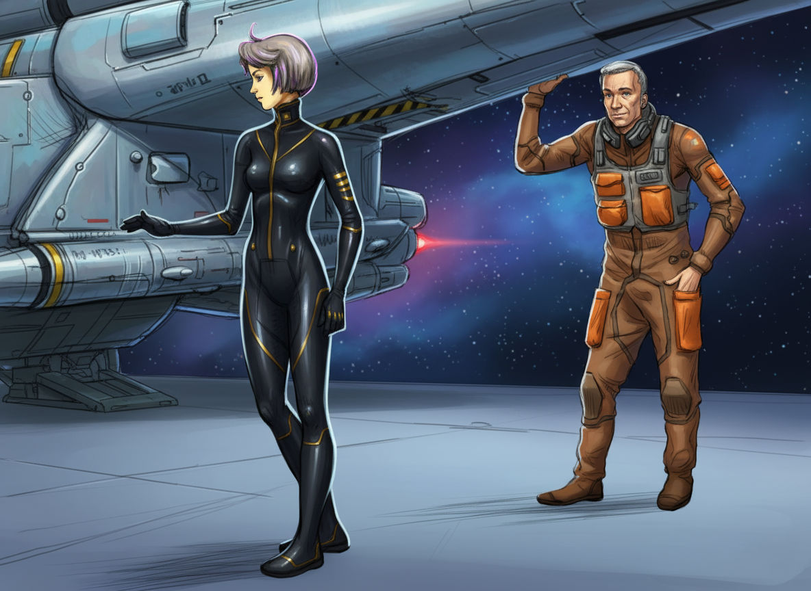 Второе - я попросил сетку довести пару старых скетче от Прибылова и НКВД до цветного арта. Калейдоскоп результатов вышел изрядный, но опять же часть получилась очень даже. Больше всего мне понравилось, что вышло из скетча с Лизой, адъютантом адмирала Шанны Синклер, сделанного Романом Малиновским когда-то.
