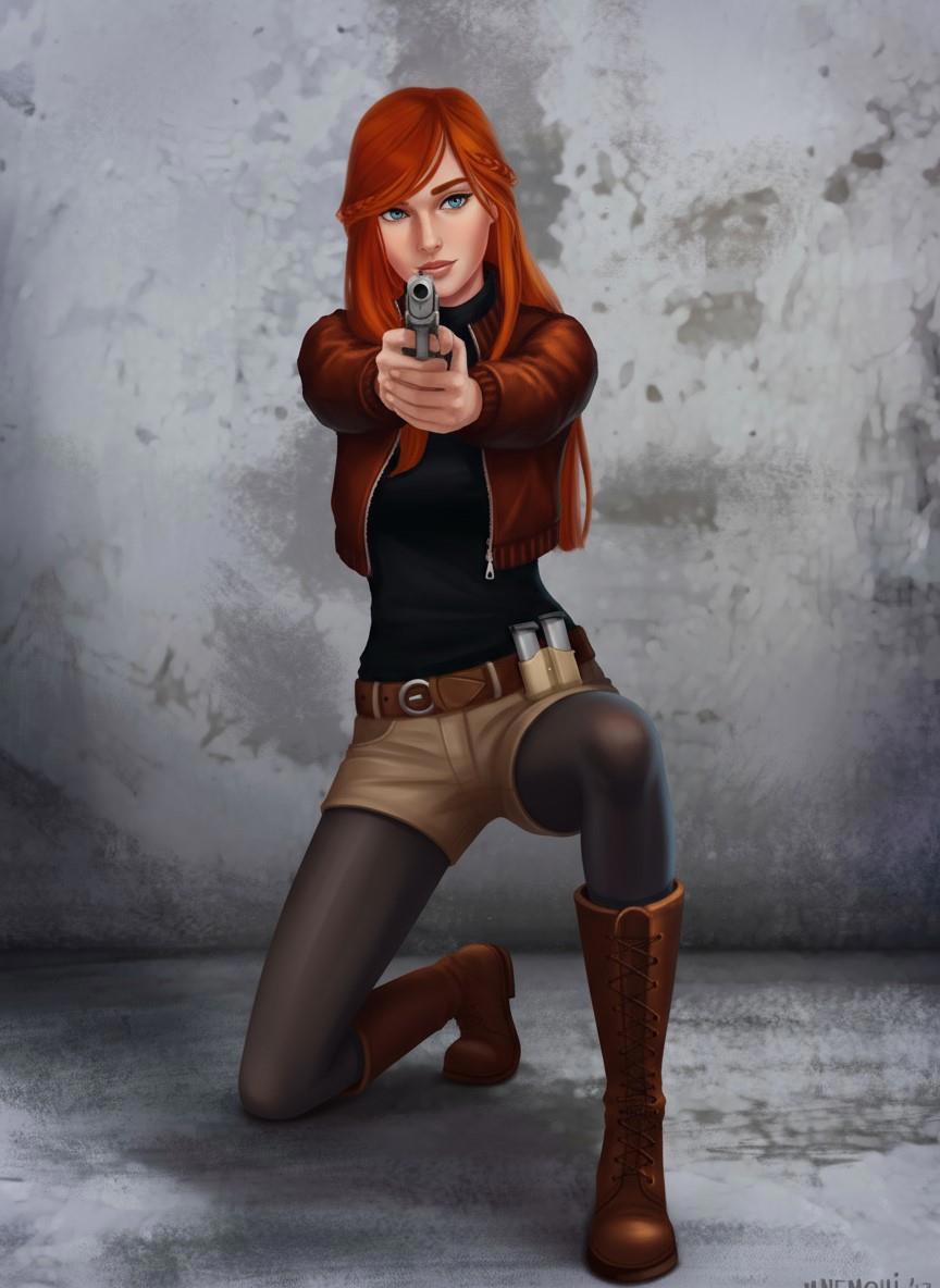 Запрос был простой - сменить позу персонажа. Я уже давно заметил, что нейросетки Сэм любят, и получилось... очень неплохо. Особенно меня впечатлило, что просьба нарисовать позу с пистолетом дала тот же пистолет, что на исходном арте.