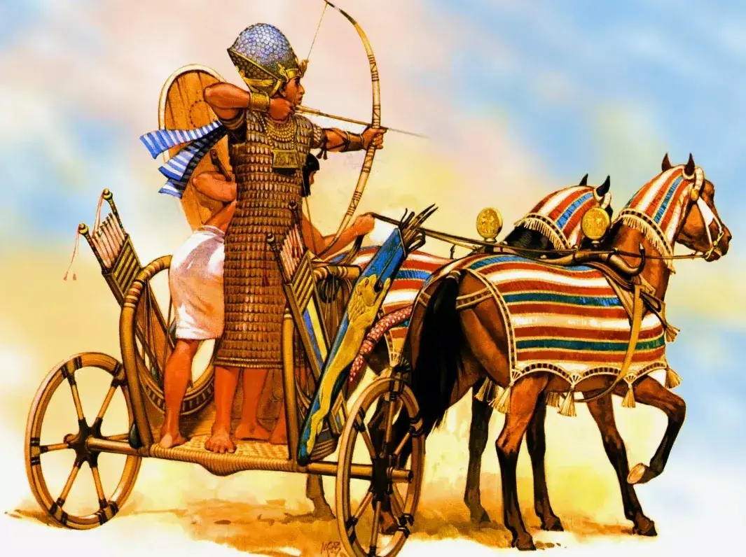 У Египта и Митанни (о них, кстати, можете почитать в моей книжке) были одни из лучших колесниц своего времени. Египтяне заимствовали их у гиксосов, сделав более легкими и маневренными. В сочетании с мощным луком, способным пробивать любую броню того периода, это делало колесничие войска грозной боевой единицей.
