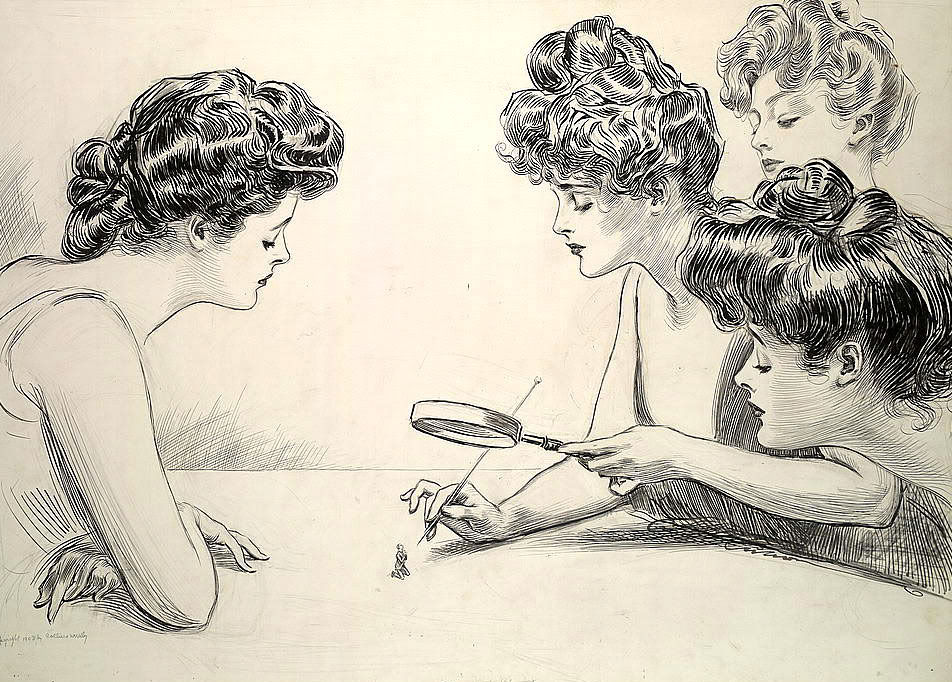Про Джеффа Питерса и Энди Таккера как-нибудь в другой раз, а сейчас про девушек из рассказов О.Генри. По первым разам я читала эти рассказы довольно-таки маленькой, и совершенно не улавливала, что все эти продавщицы, миллионерские дочери, девицы с ранчо, художницы и прочие - не современные американки и даже не девушки эпохи джаза, а девушки Гибсона! Что они в платьях до полу, в корсетах и с вооот такими укладками. И что соорудить знаменитое пурпурное платье к корпоративу для охмурения шефа-зожника было значительно сложнее и дороже, чем мне казалось.