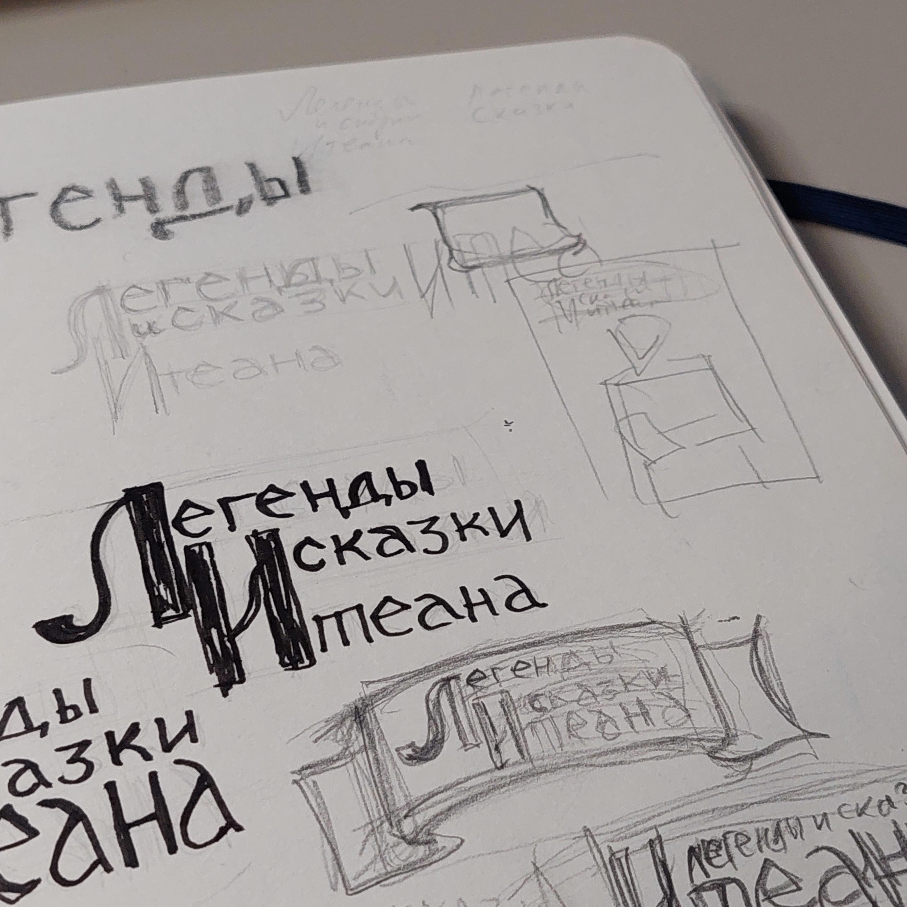 Я долго настраивала кисти и работала над формой букв. Мне хотелось сделать их сказочными, немного торжественными, но довольно лёгкими. По итогу название было написано без "и", такое решение, потому что "Итеана" аккуратно поставлено между "Л" из "Легенды" и словом "сказки". Я просто избежала дубля буквы. Вот что вышло: