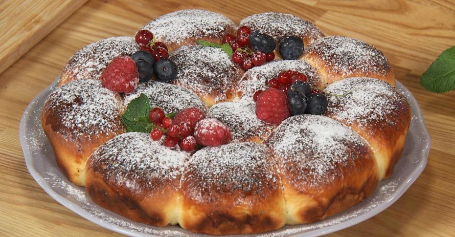 Этот пирог с ягодами имеет необычное строение, он состоит из маленьких пирожков, которые в духовке соединяются в один пирог.