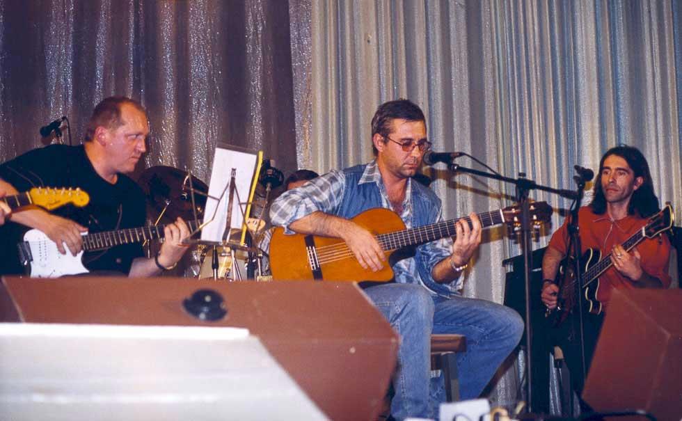 И мы с Буркиным на гитарах, свою часть на акустике, в подыгрыше на электрике.