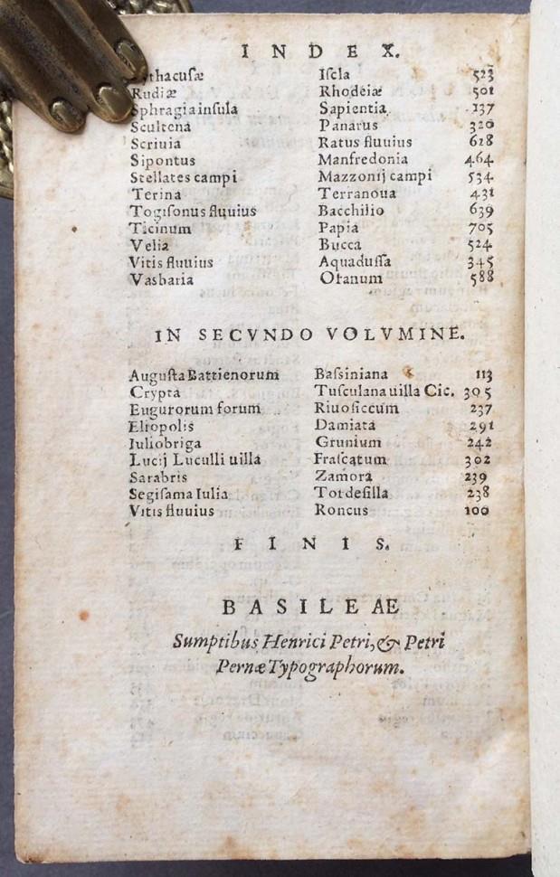Книга напечатана в Базеле, печатники Henricum Petri и Petrum Pernam, 2 тома в одном переплёте, на латыни.