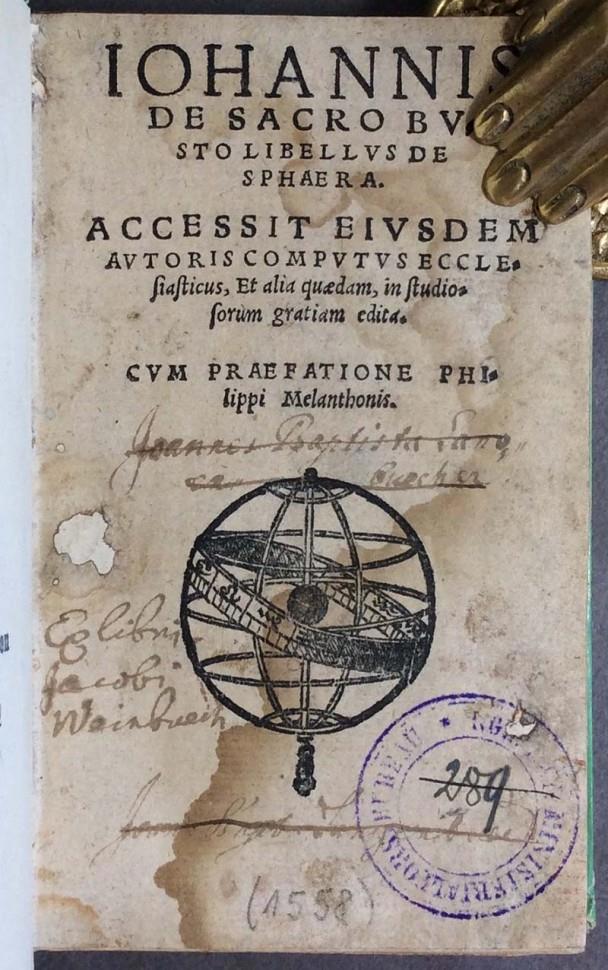 1-ая книга «Iohannis De Sacro Busto Libellus De Sphaera…», напечатана в Вюртемберге, типография Petrus Seitz, на латыни и греческом.
