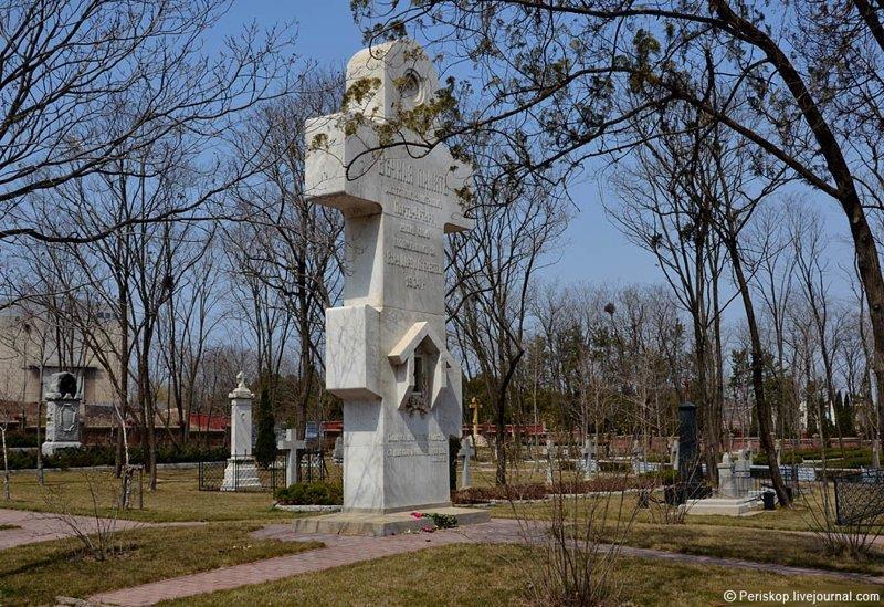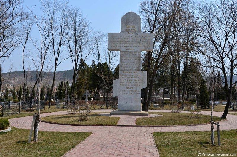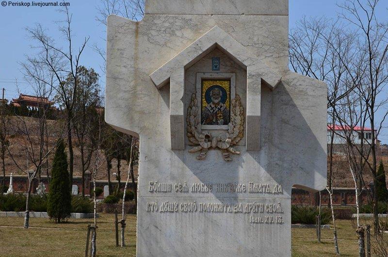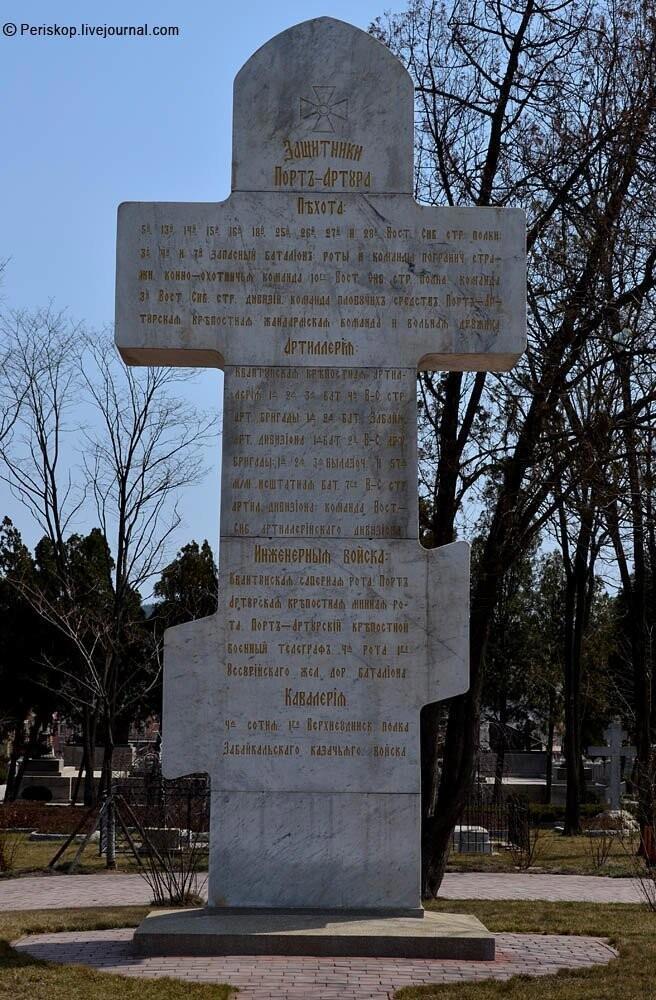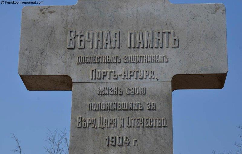 Позднее, в 1912 году, перед входом на Русское кладбище уже русские мастера установили восьмиметровый христианский крест из белого мрамора. На его лицевой стороне высекли слова: “Вечная память доблестным защитникам Порт-Артура, жизнь свою положившим за Веру, Царя и Отечество. Больше сея любви никто не имать, да кто душу свою положит за други своя”.