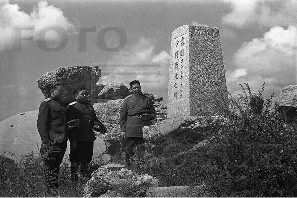 Порт-Артур. Командующий 1-й Кразнознамённой армии генерал-полковник Белобородов (в центре) на месте гибели генерала Кондратенко.