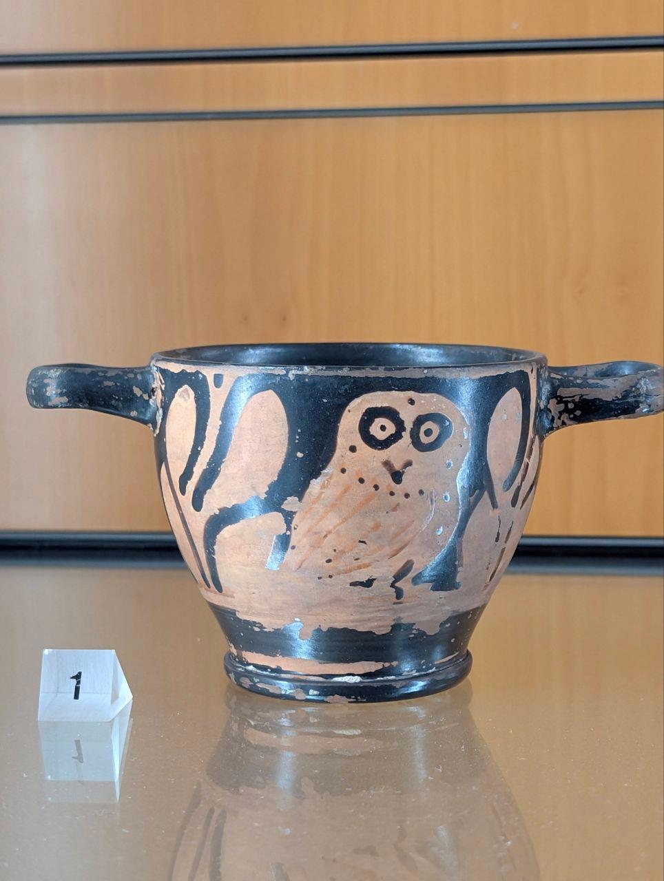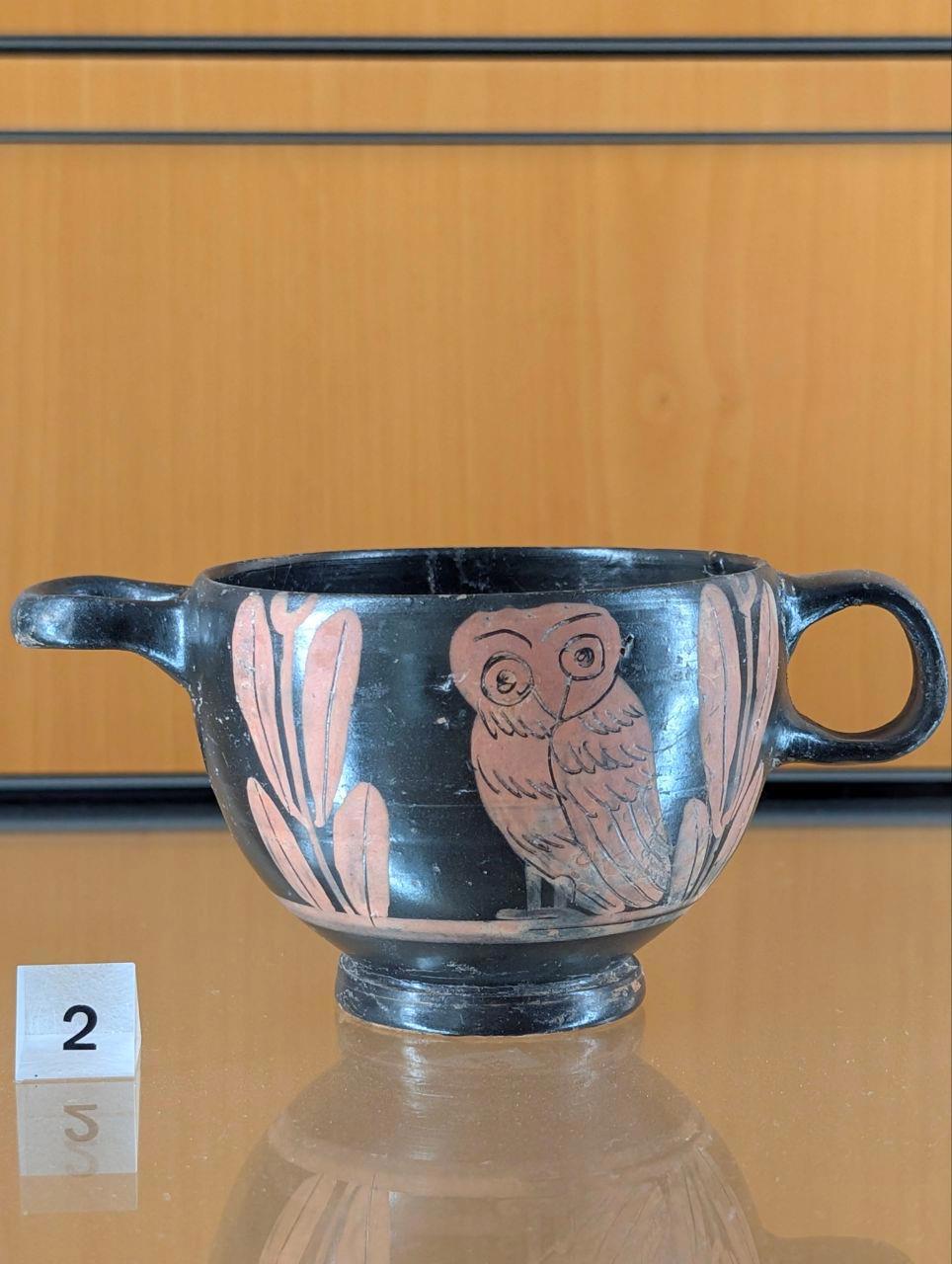 Ещё я сфотографировал несколько экспонатов из залов, посвященных античной культуре, вроде пары очень смешных афинских чашек с совами. Мы привыкли к тому, что краснофигурная роспись на греческих вазах совершенна - но, как справедливо заметила Соня, глядя на самые лучшие образцы подобной росписи, очень легко забыть, что не все древнегреческие мастера были хорошими художниками. Совы - просто огонь, в стиле животных из "Страдающего средневековья".