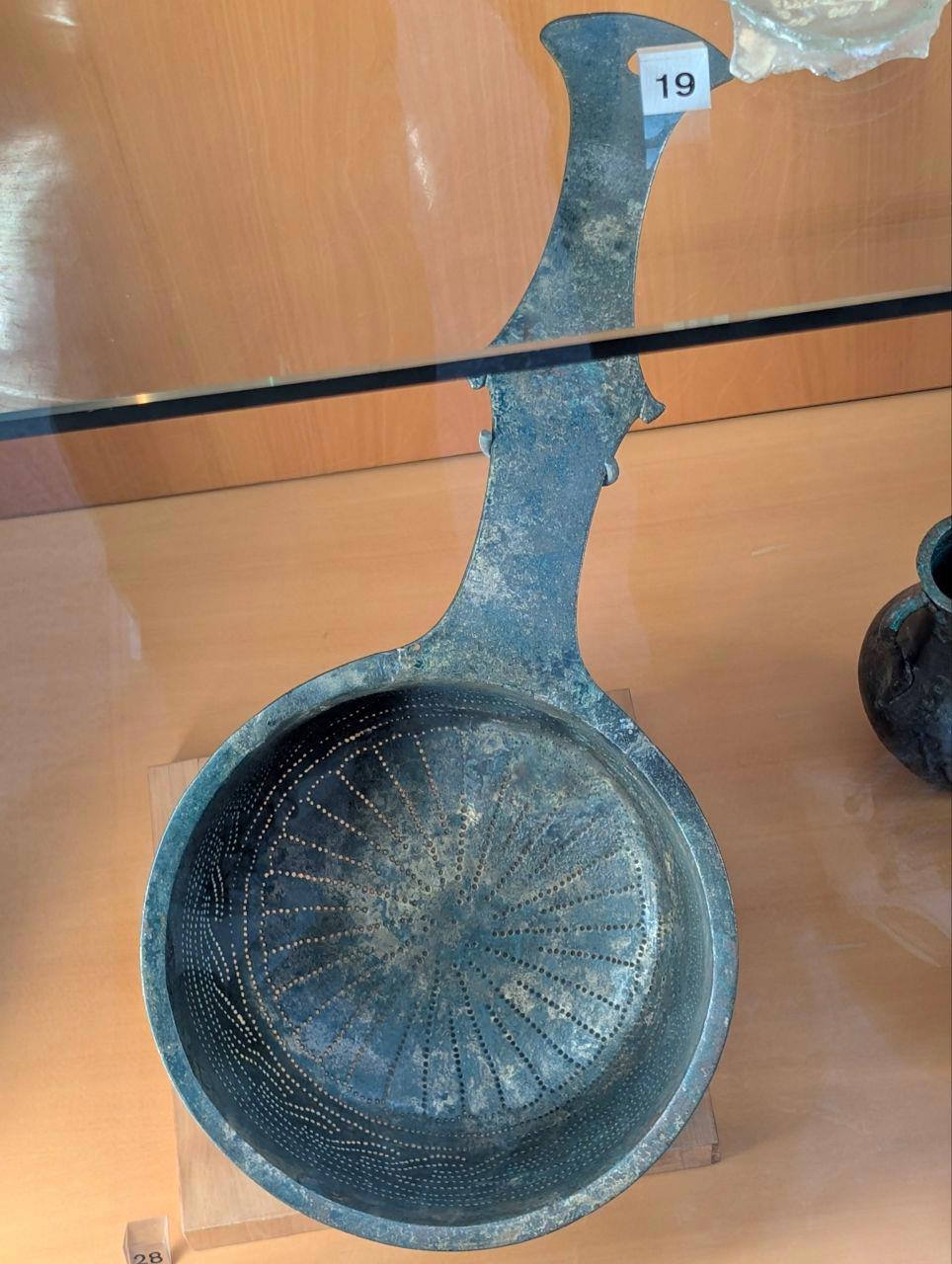 Ну и, конечно, как всегда, я не мог оторваться от различных бытовых вещей. История быта, мебели, кулинарии, медицины и тому подобных частностей всегда оказывала на меня буквально гипнотическое действие. Взгляните, например, на этот древнеримский дуршлаг и кочергу с костяной ручкой. Понятно, что сам принцип действия таких вещей, как кочерга или дуршлаг, не мог измениться за две тысячи лет, но все равно - есть в знакомом и обыденном виде этого римского дуршлага что-то завораживающее. А эта кочерга спокойно могла прилагаться к современному камину для загородного дома, и никто бы даже глазом не моргнул.
