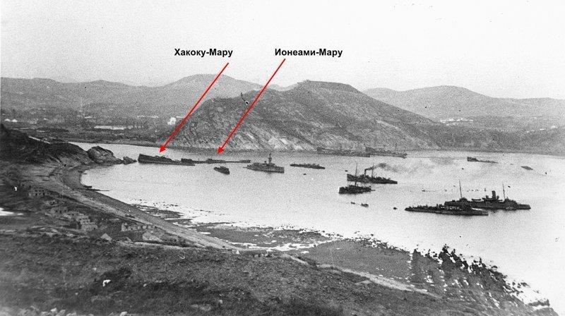 Результаты боевой работы батареи, чей бруствер мы видим, японские брандеры на подступе к входу в гавань. В том числе и два брандера, которым не хватило буквально метров, что бы закрыть для наших кораблей выход в море.
