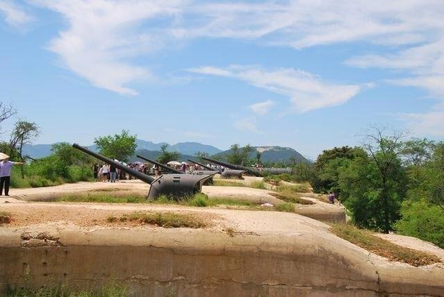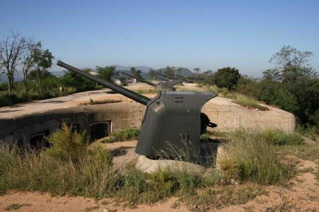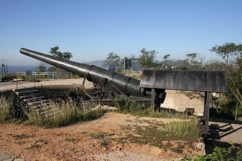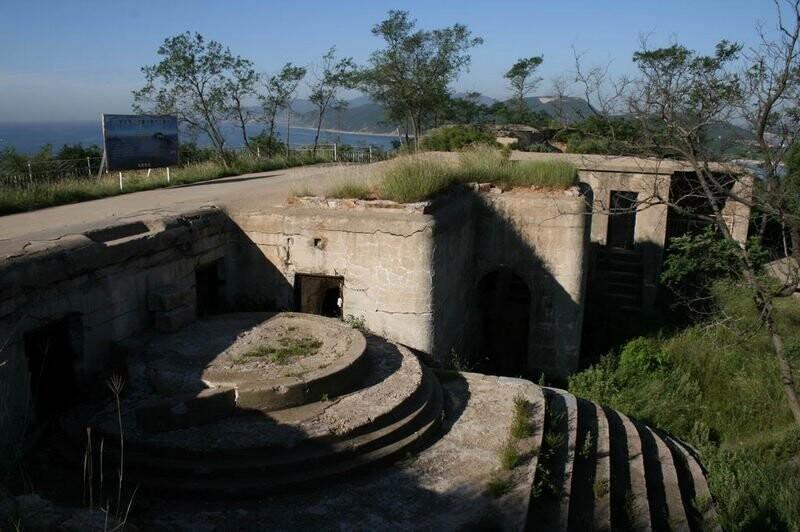 Электрический утес кажется знакомым. Вот, в лощине стоит казарма, где-то поблизости была батарейная канцелярия. На утес ведет лестница, которая с тех времен сохранилась, но была облагорожена во время советского военного присутствия. Надо думать, что наши красные командиры про батарею читали и сохранили на ней по одной из 254-мм и 152-мм пушек со времен Русско-Японской, хотя никакого практического значения они не имело. Наши комендоры, в нарушение условий капитуляции замки из всех орудий вынули и утопили в море. И особенное спасибо в связи со всем этим, не коменданту нашей базы или командиру батареи Электрического утеса, а тому неизвестному китайскому командиру, который то ли из вредности, то ли от лени своей, не позволил во время "Большого скачка", когда весь Китай "учетверял" производство чугуна и стали, сдать эти пушки в металлолом, дабы были они переплавлены в не понять что.