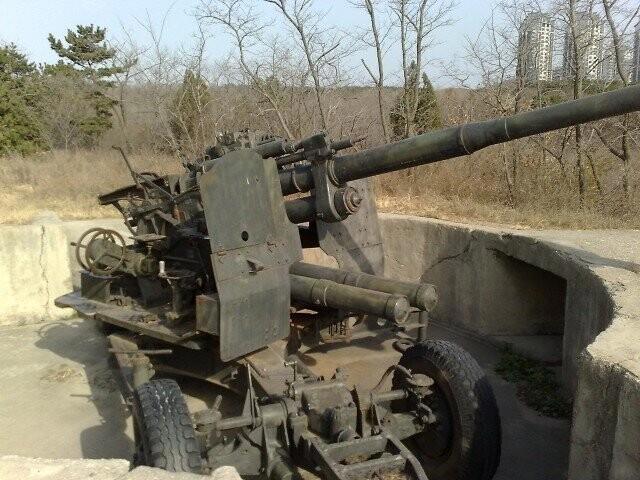 Рядом с батареей расположена зенитка в родном для неё дворике.