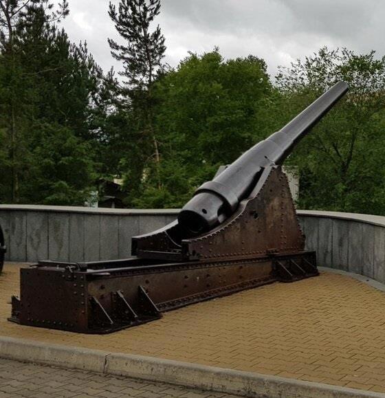 Это две морские 152-мм пушки. Установленные на Большом Орлином Гнезде. Одна даже с боевыми повреждениями. Есть легенда, что японцы не смогли их снять и оставили на месте.