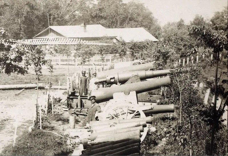Настоящие свидетели захвата японцами китайской крепости Люйшунь, эти пушки по распоряжению генерал-губернатора Приамурского края Гродекова перевезли из уже русского Порт-Артура в Хабаровск для музея в 1899 году