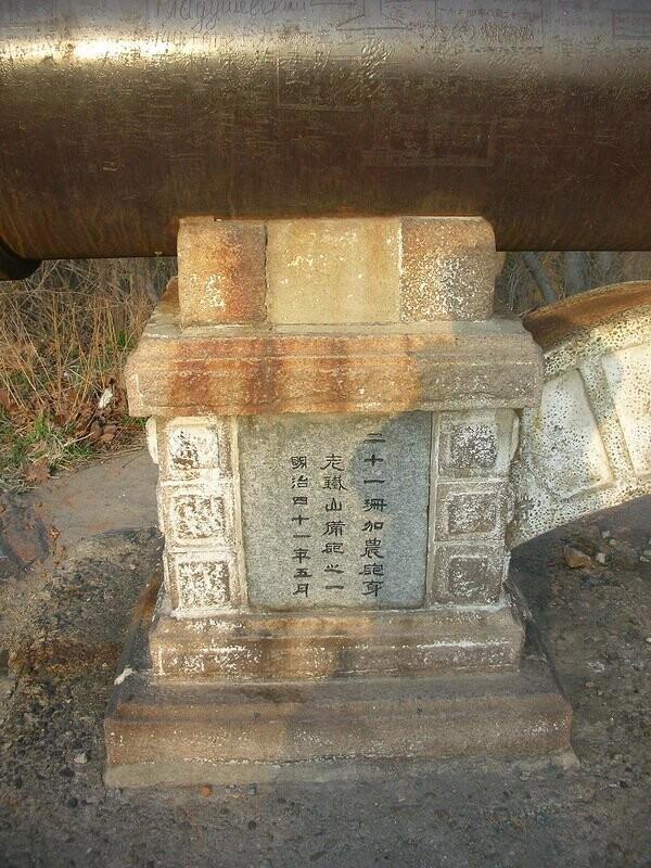 Так как китайские орудия в 1899 году абсолютно не планировалось использовать в обороне порта, то можно не сомневаться что в музей вывезли самые целые и интересные образцы. Вот только из 12 вывезенных тогда пушек именно эти две были самые крупные.