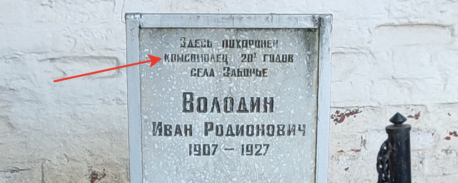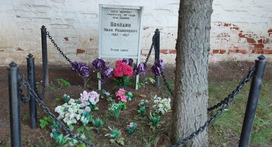 У монастырской стены похоронен комсомолец Володин.