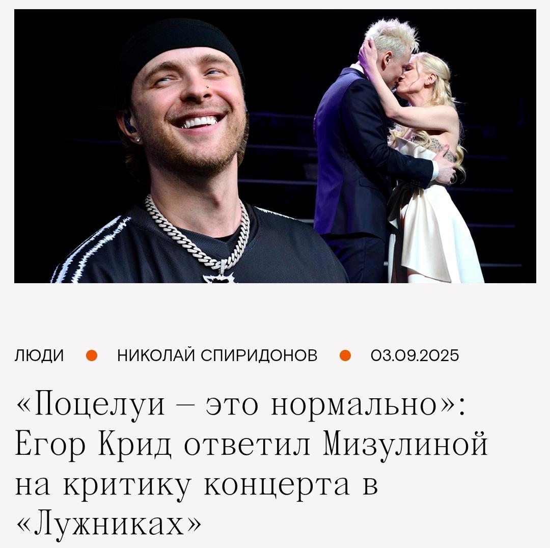 «Посмотрел „скандальное“ видео с концерта Егора Крида. Искал „разврат“, на который жаловались „защитники традиционных ценностей“, но так и не нашел. Отнимать время доносами у тех, кто должен заниматься реальными преступниками, — просто недопустимо. У правоохранительных органов есть задачи поважнее»