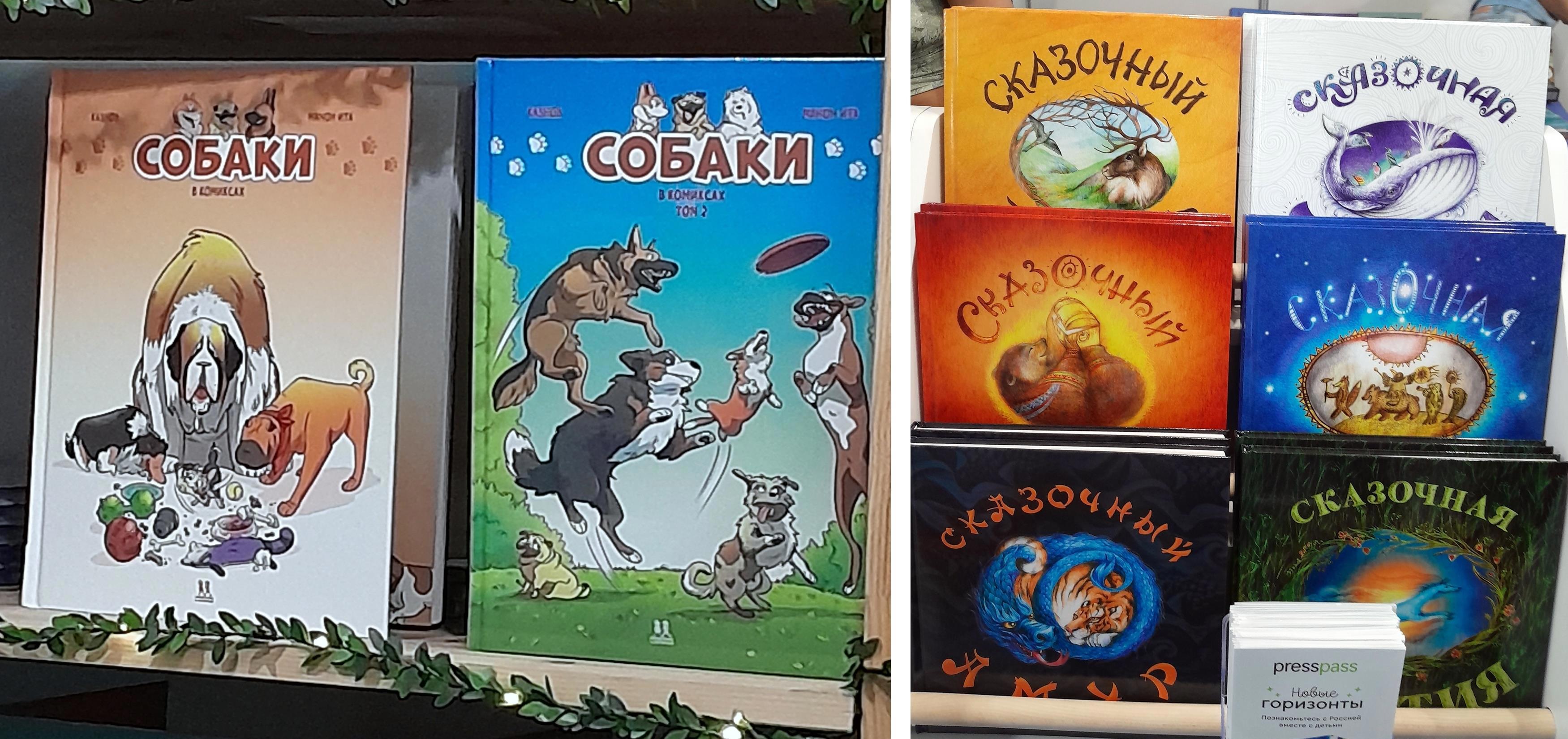 Есть оформления в мультяшном стиле, но они соответствовали жанру и их количество во всех издательствах вместе, по-моему, меньше, чем в одном издательстве "Миф", которое тоже, конечно, имело стенд на ярмарке.