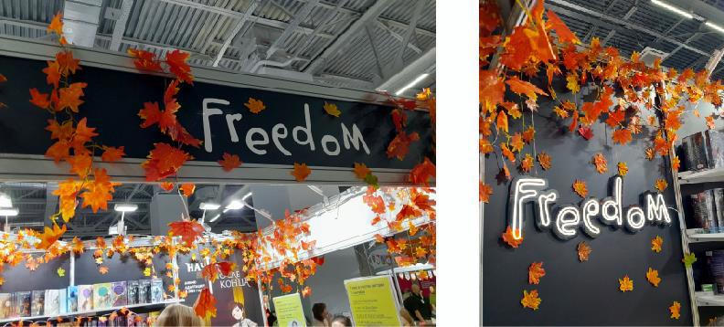 Стенды некоторых издательств были украшены. Очень понравилось осенний декор издательства Freedom.