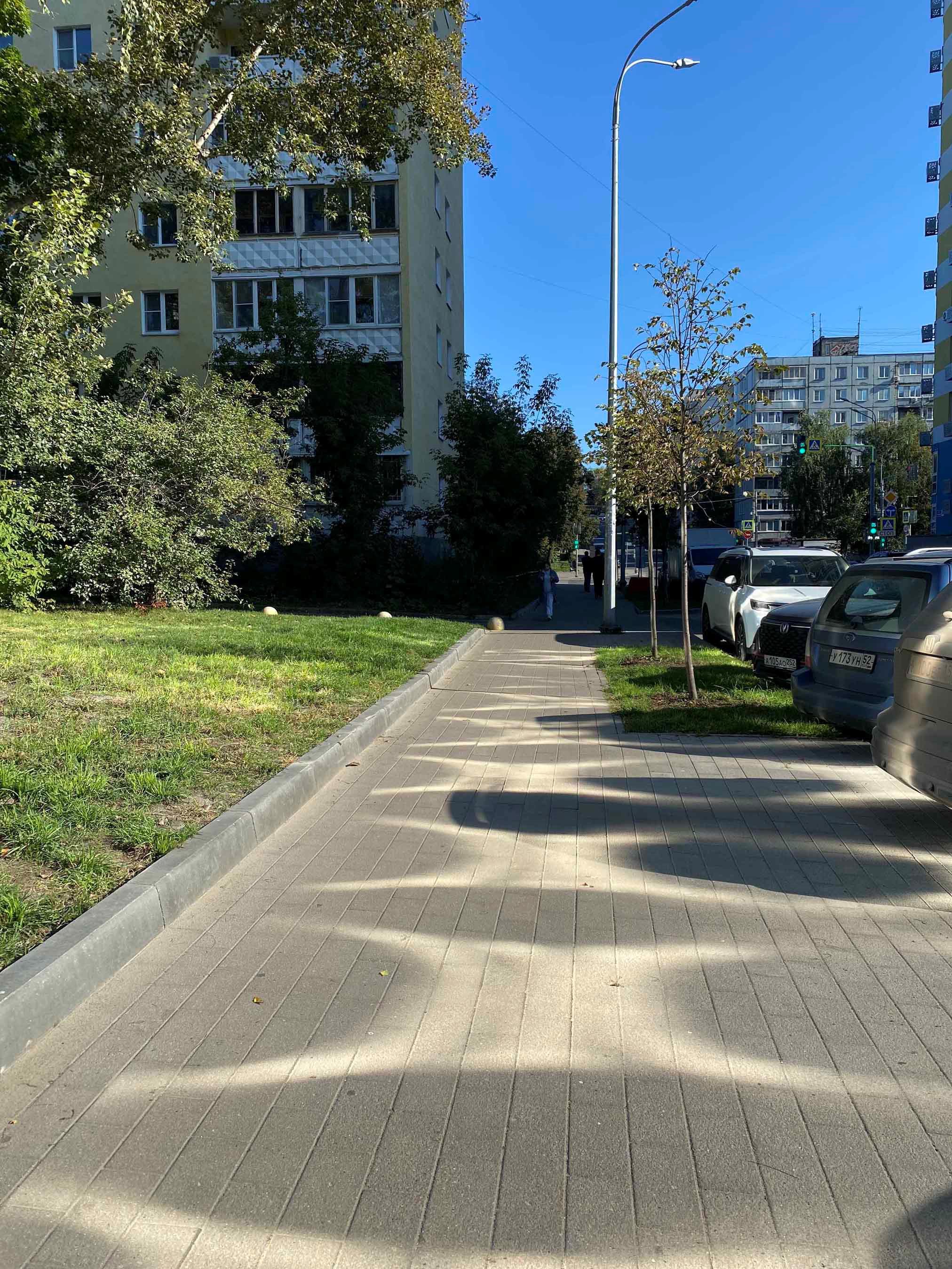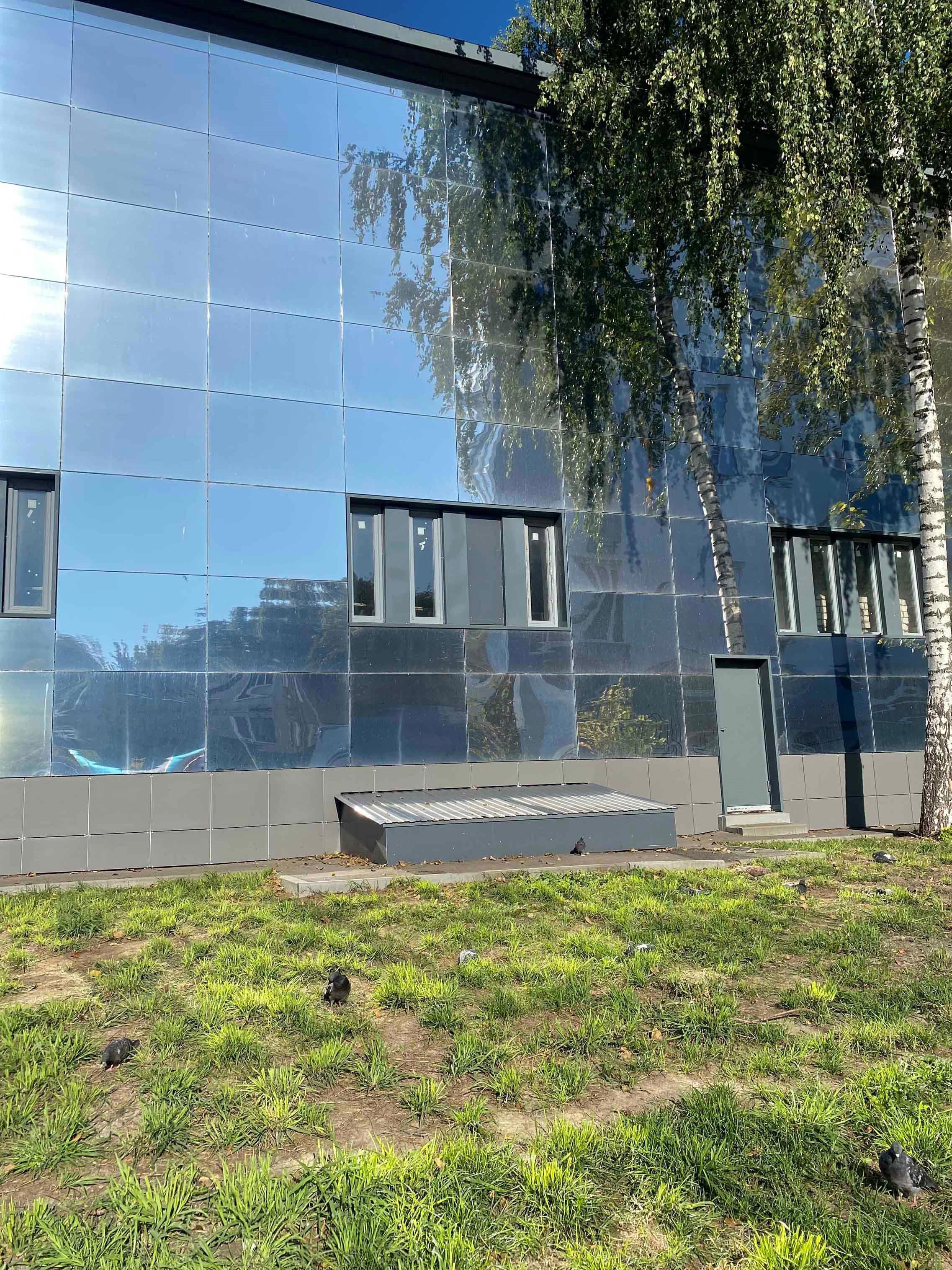 А это отсвет от стены. Была обычная кирпичная стена, потом на ней появился стрит-арт — ничего особенного. А потом стену облицевали — вот так. И стала стена зеркальной.