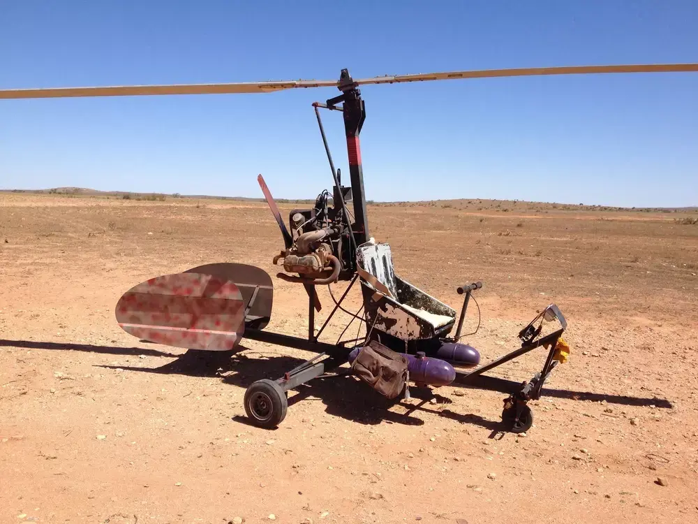 Вспомнился фильм Безумный Макс, и вертолётчик Капитан Гиро с гирокоптером, этот настоящий самодел, с заявленной максимальной скоростью полёта в 160 км/ч: