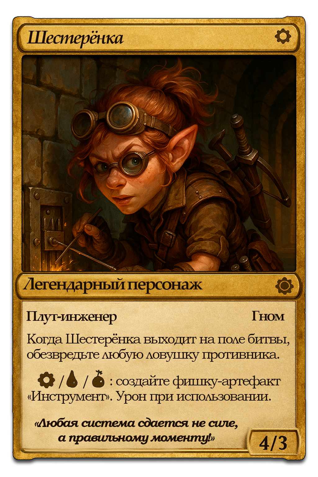 Карточка персонажа "Шестеренка", цикл "Переплетения"