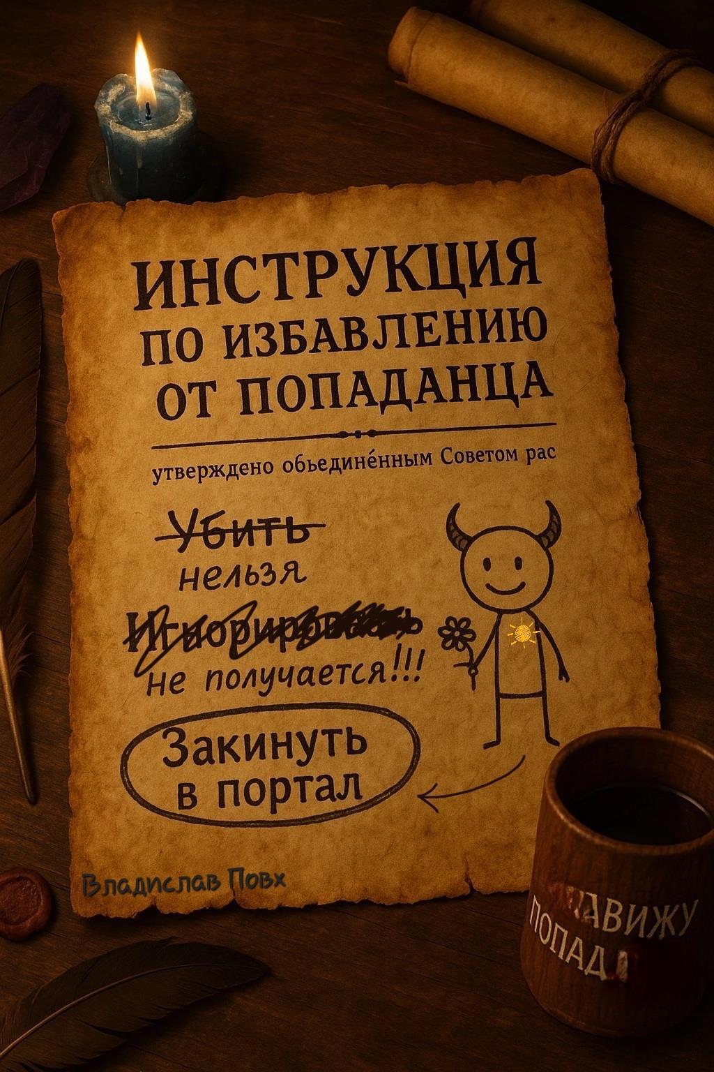 «Что если один добрый человек, попавший в чужой мир, способен невольно стать его катастрофой, и для спасения мира всем придётся отложить мечи и объединиться… только чтобы отправить его домой.»