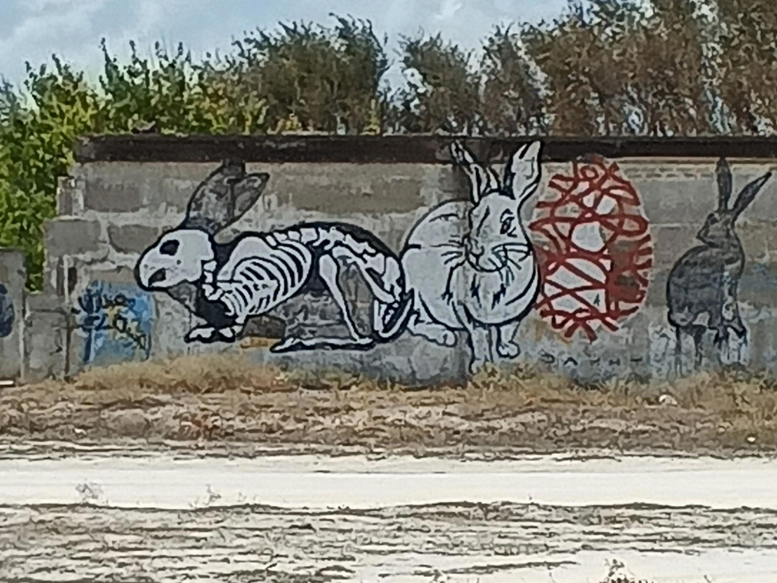Погуляв по берегу и сфотографировав вот такое граффити, мы отправились в обратный путь.
