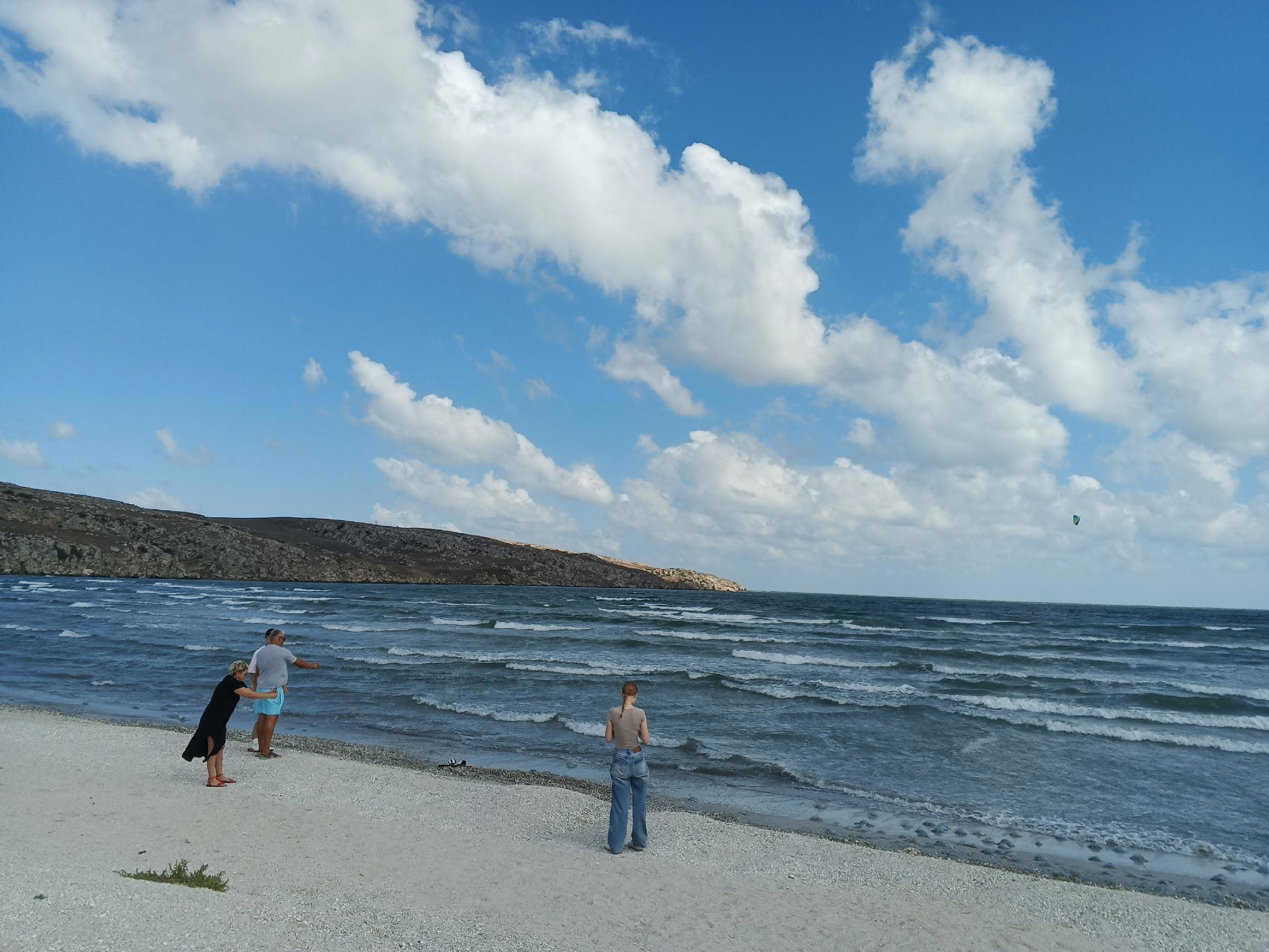 А потом мы искупались, но не долго. Вода тёплая, но холодный ветер и длинная неприятная волна. Поэтому слегка окунувшись в Азовское море, мы решили проехаться чуть дальше Щёлкино. А рядом находится с. Мысовое. Это село, находится на мысе Казантип. На сам мыс мы не поехали, всё-таки здесь расположен Казантипский заповедник, а вот в само село, которое уже очень тесно соприкасается с Щёлкино, мы заглянули.
