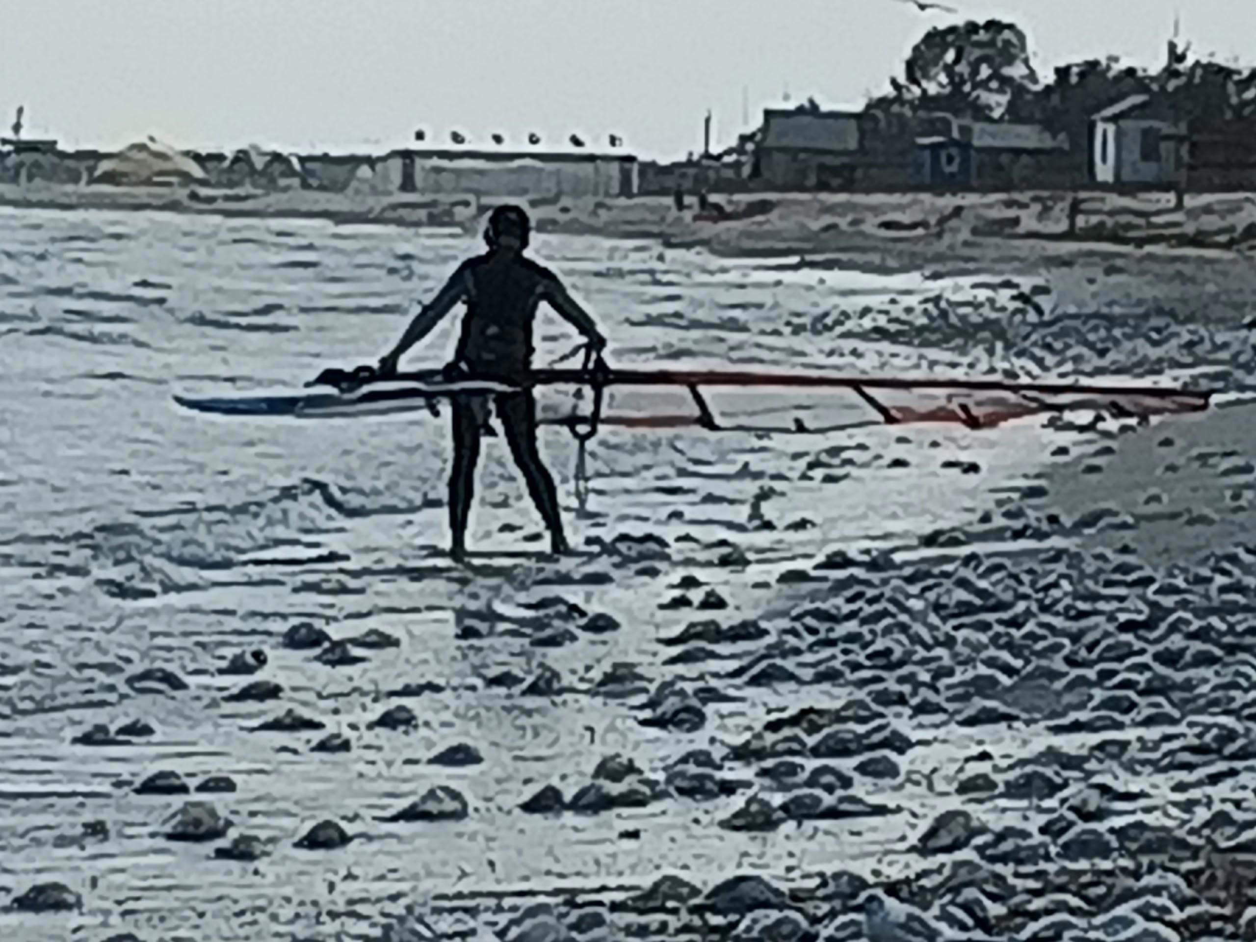 Кстати, если вы внимательно посмотрите на фотографию, то у вас может возникнуть вопрос: А что это за такие холмики в полосе прибоя? А это не холмики. Это медузы, корнероты. Очень красивые и одновременно ядовитые медузы. Залив буквально кишит этими тварями, волны выбрасывают их на песок. Купаться в заливе в данный момент без гидрокостюма не рекомендуется...