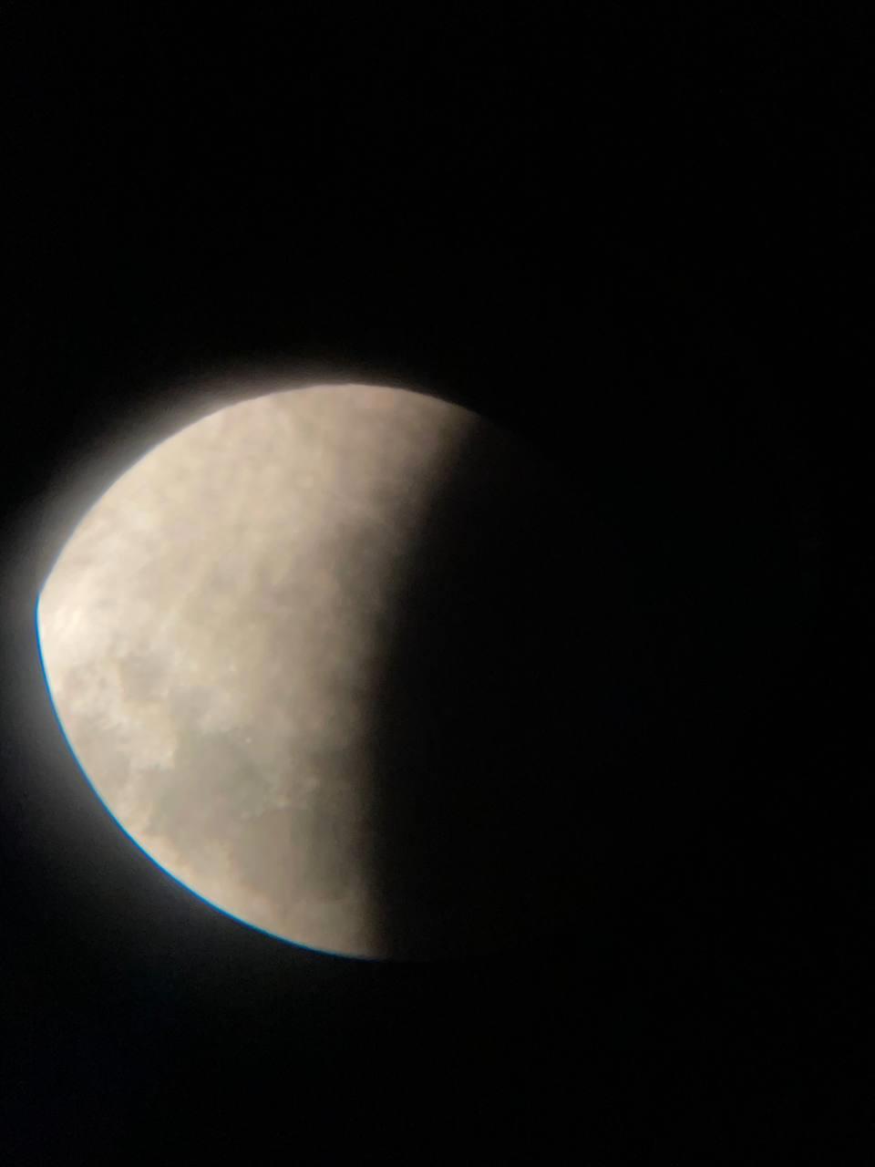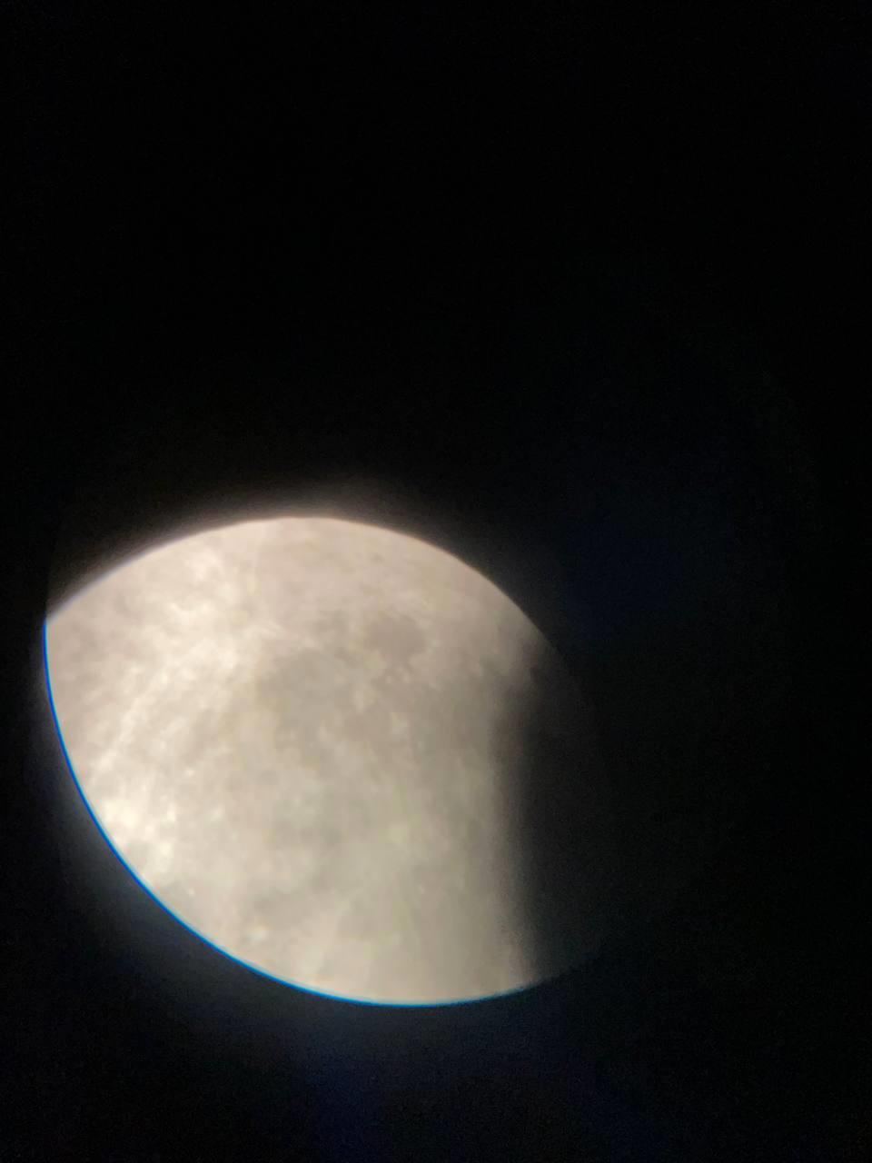 Супруга аж ахнула. Понравилось ей через телескоп за затмением наблюдать. Потихоньку тьма завоевывала наш спутник: