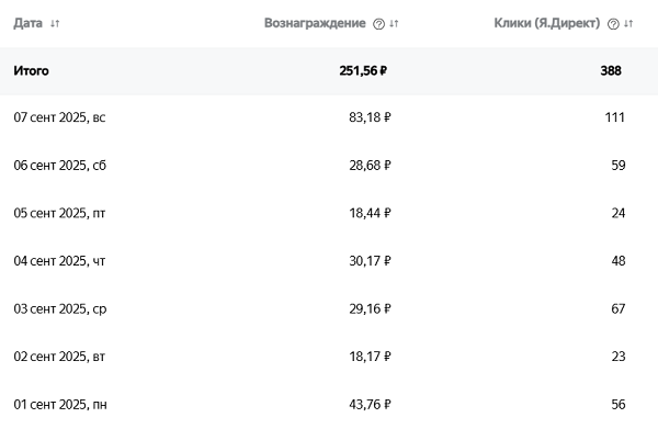 Да, не так уж и много - всего 250 р. за неделю, но я на "много" и не рассчитывал. Просто было интересно.
