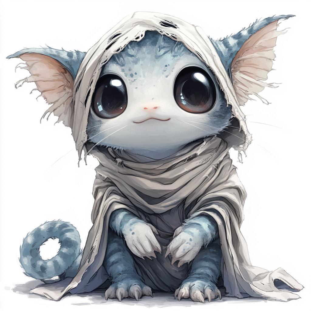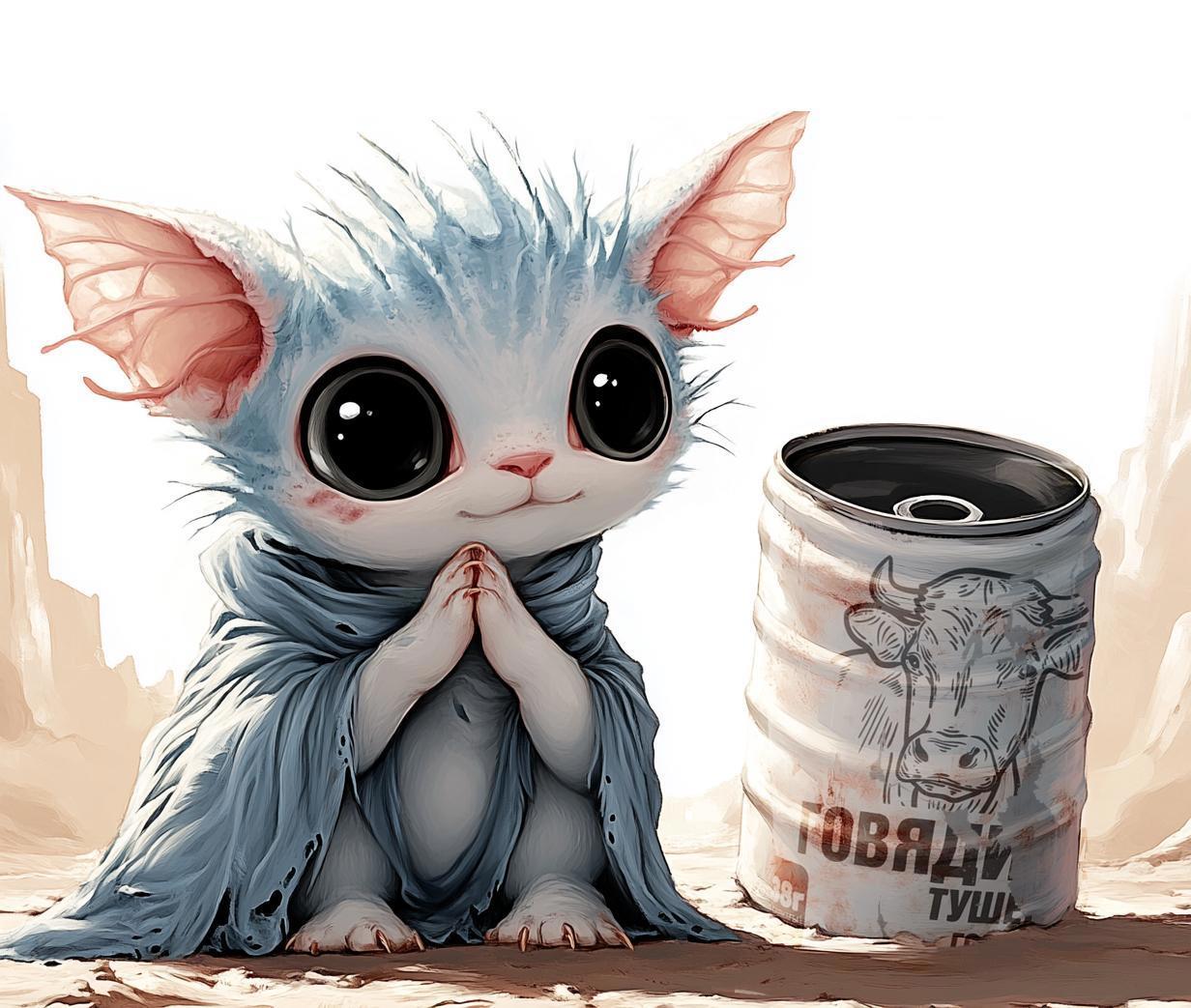 Пушистик, питомец Ханы, из Железной чумы. Голый и беззащитный (пока его очищали от "мусора" и мыли -- сопротивлялся)