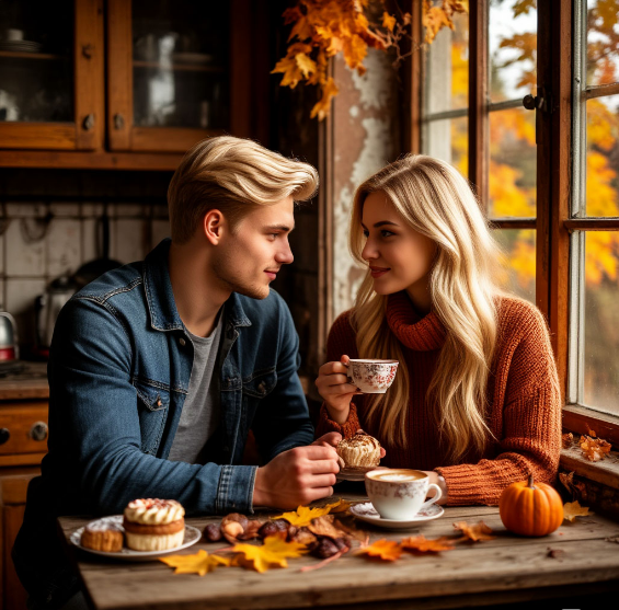 А вот ведьма Настя попивает осенний кофе в компании проклятого красавчика Игоря: