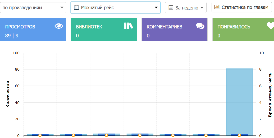 В статистике работы "Мохнатый рейс" один читатель и 77 просмотров на сегодня.