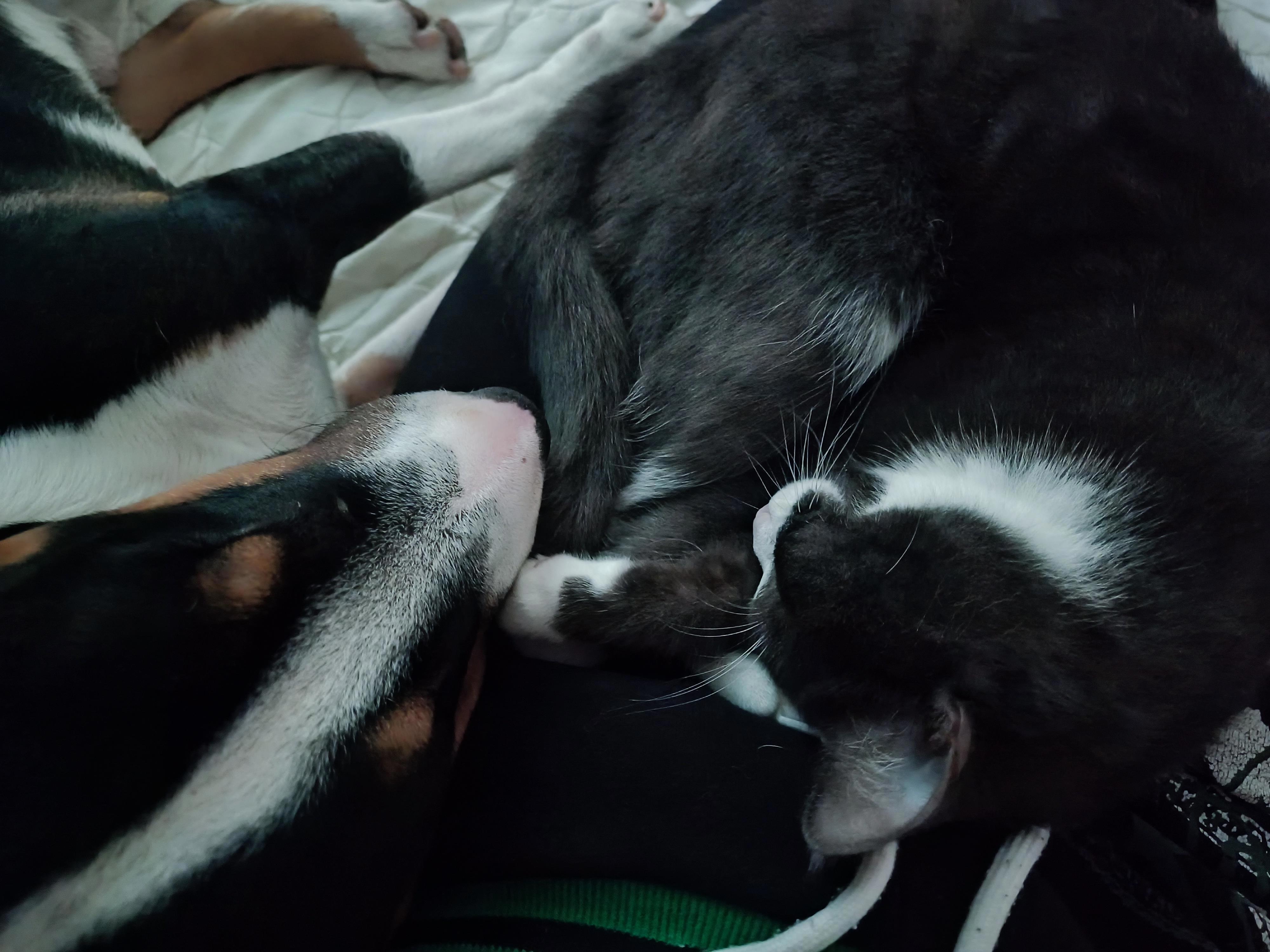 Гриша и Дама-дама лежат на мне и слушают стихи. Приобщаются к прекрасному