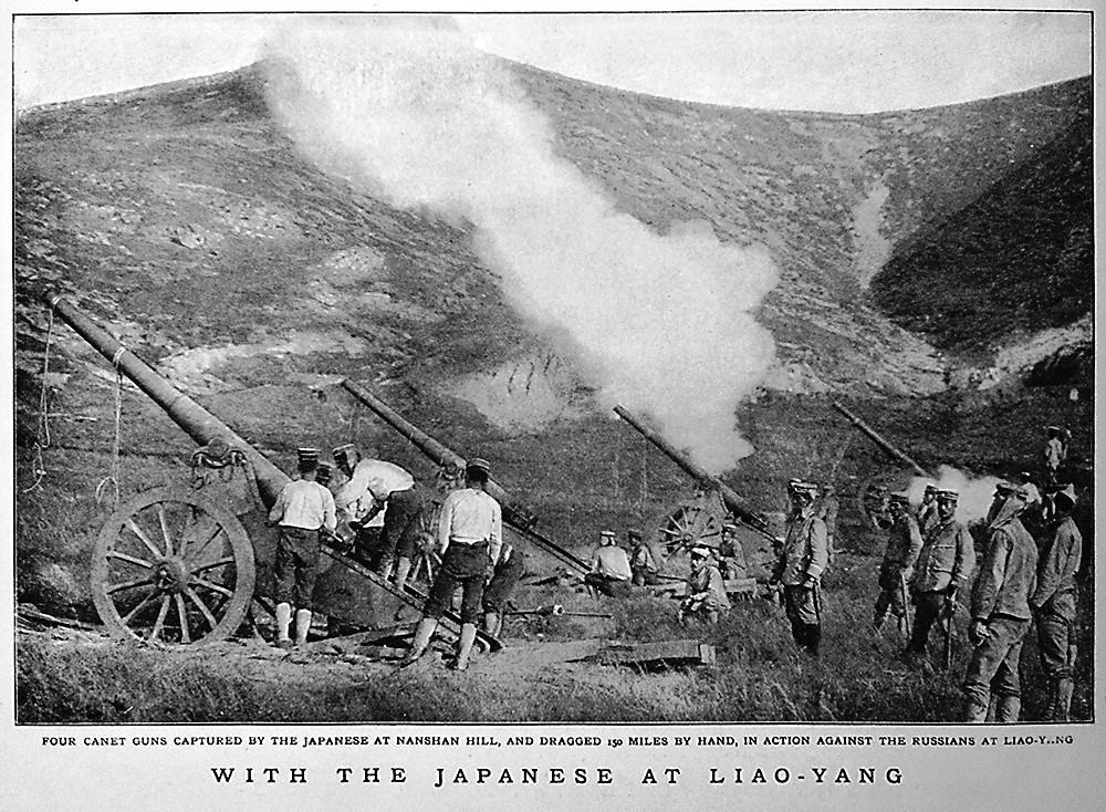 Японцы стреляют из бывших наших пушек, нашими снарядами, по нашим войска. Это правда сражение за Ляоян. Но пушки порт-артурские, с позиции под Кинджоу.