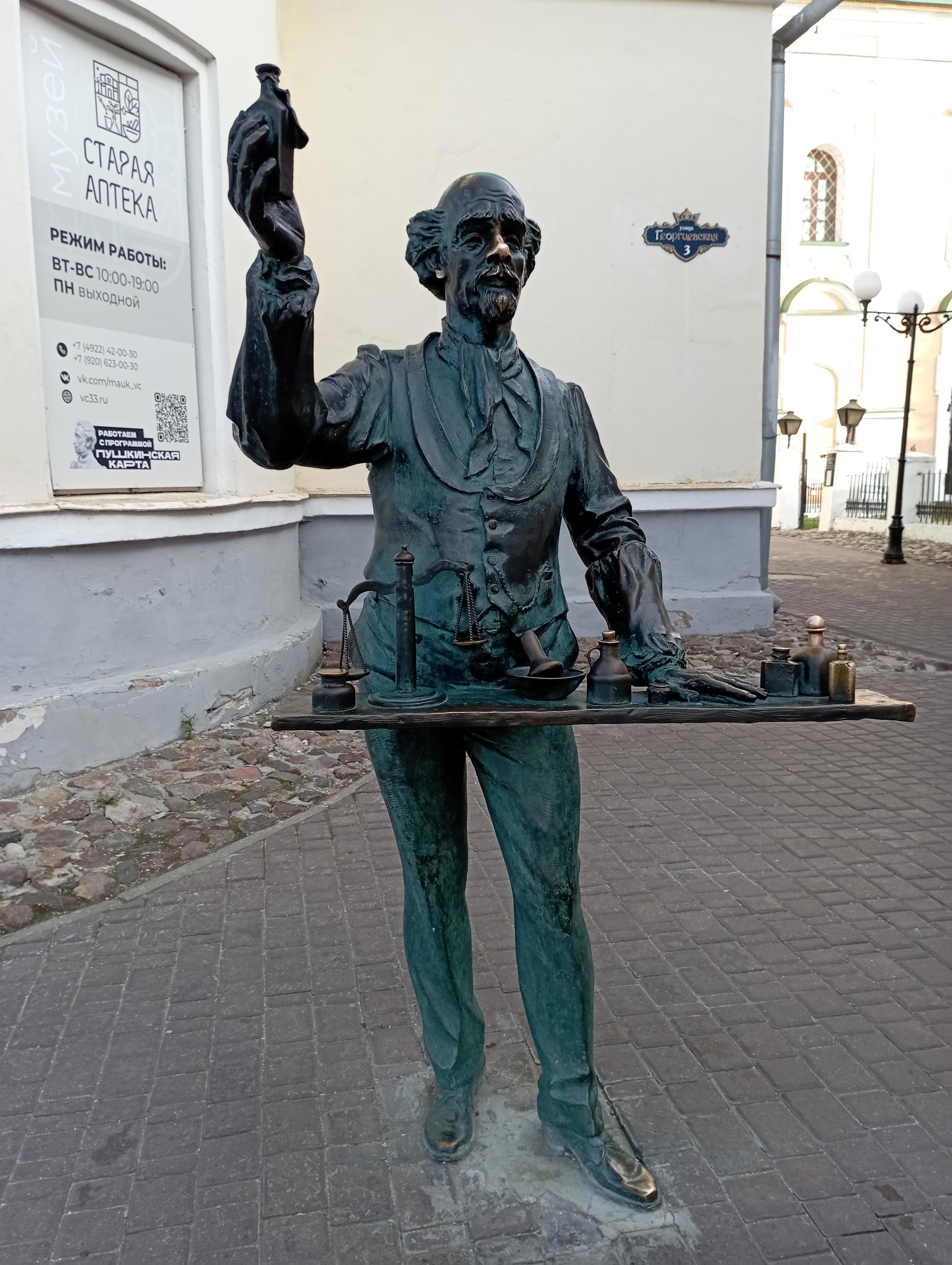 Рядом с музеем стоит вот такая симпатичная скульптура аптекаря, который любезно предлагает разные снадобья. С аптекарем очень много фотографируются, я запарилась ждать, пока у скульптуры хоть на пару секунд не будет никого. И явно видно, какую часть тела трогают больше всего