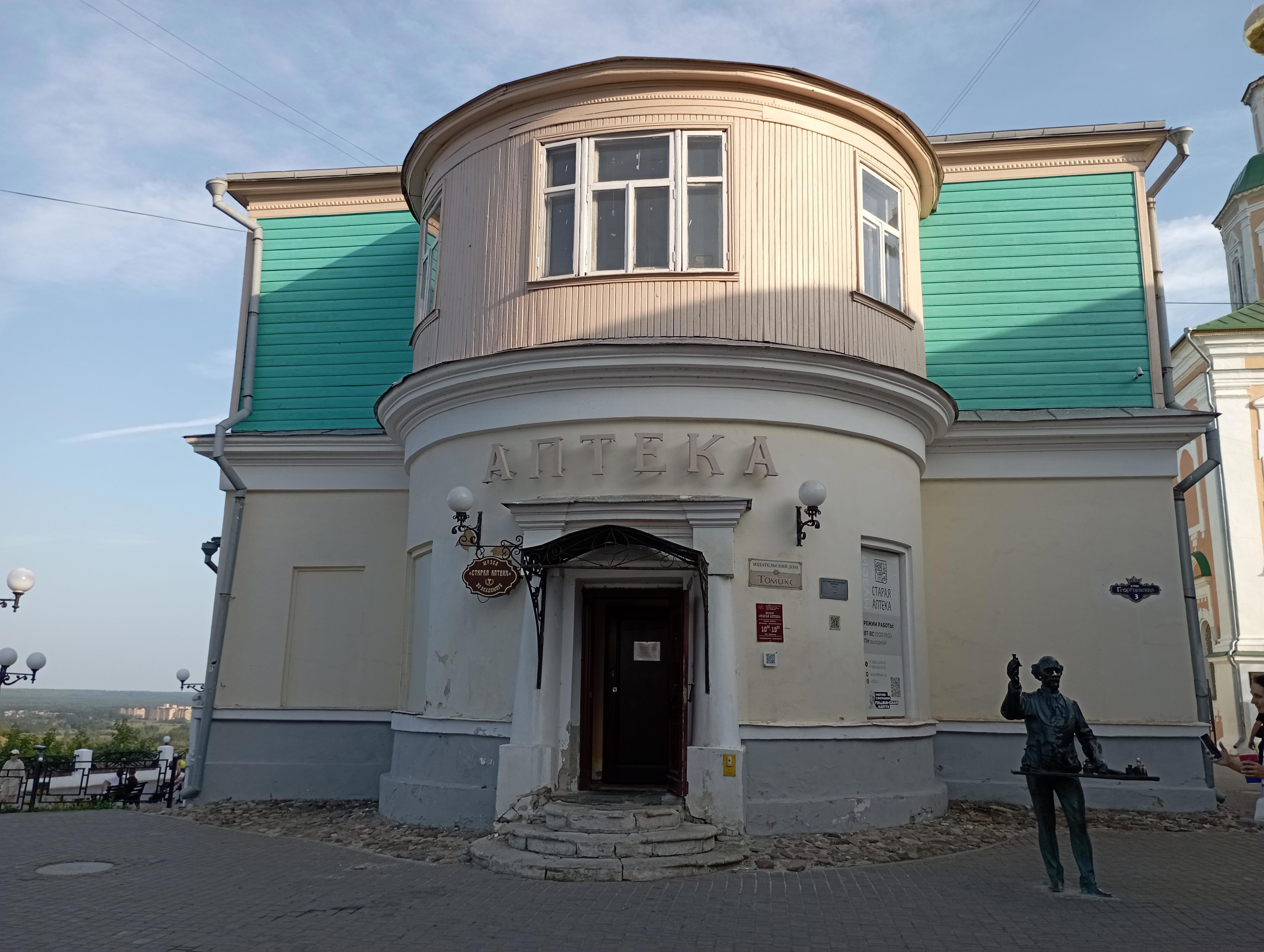 Вот он. Находится в самом сердце Владимира, на живописной пешеходной улице Георгиевской. Здание историческое, и не просто здание: с 1805 по 2010 гг. в нём находилась действующая аптека, которая, согласно архивным документам, уже в конце XIX в. называлась «старой». Собственно, это вторая по возрасту из сохранившихся аптек России (старейшая — в Туле)!
