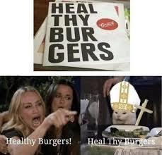 Поэтому давайте все будем скандировать: «ИСЦЕЛИ СВОЙ БУРГЕР!»