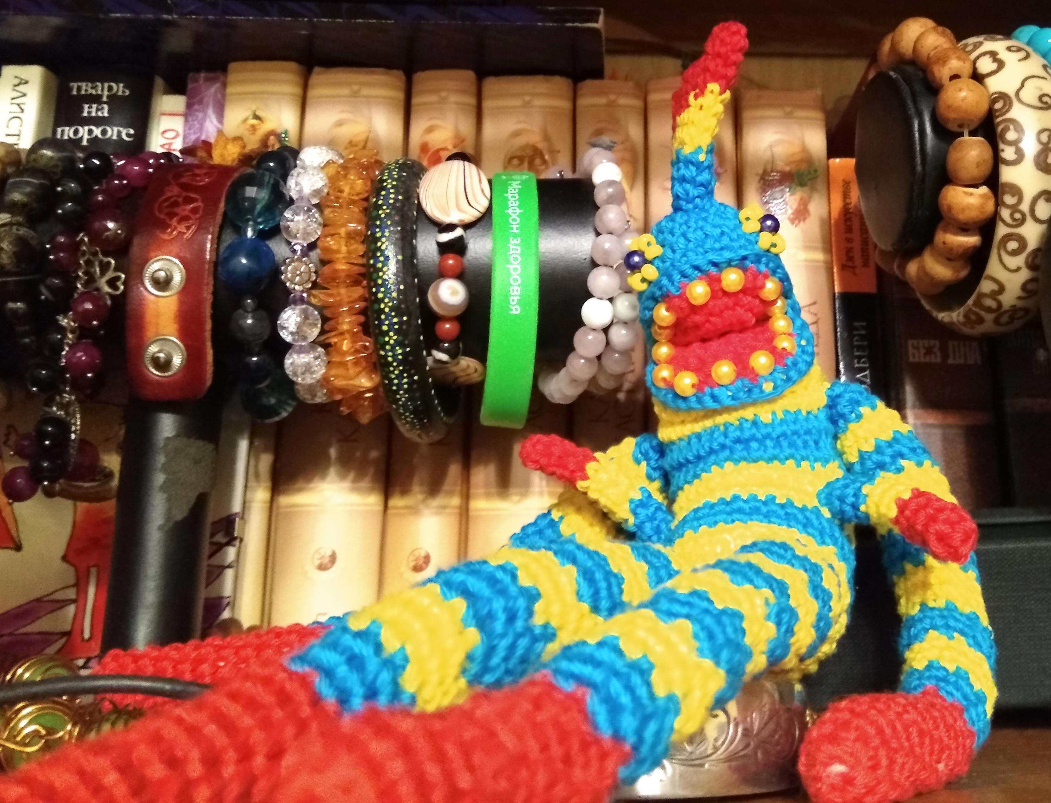 Автор: Василиса ВетроваНа новогодних праздниках я ввязалась в интересное мероприятие, Ярмарку зависти от Марики и, надо сказать, получила удовольствие. Само задание было необычным - хвалить (конечно же за дело) любимых авторов АТ. Так что я наконец-то в полном объёме выразила свои чувства, а авторы, надеюсь, нашли новых читателей. И сегодня из Чехии наконец-то приехал подарок - самолично связанная Марикой завистливая вша красно-желто-голубого цвета. И открыточка с кваржиком! И всё это мило подарочно упаковано)