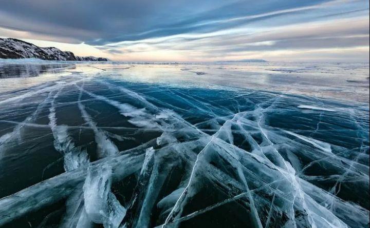 8. Озеро Байкал в России – зимой образуются прозрачные синие льдины, будто кристаллы.
