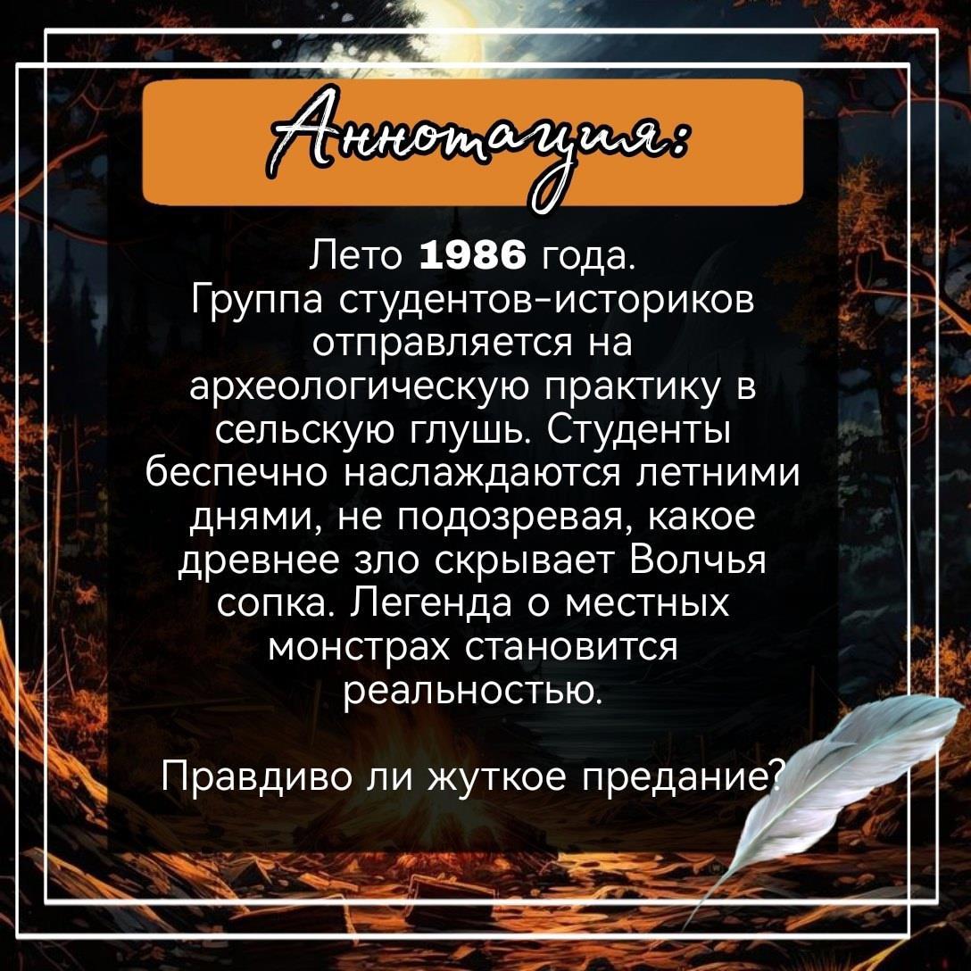 Но они не подозревали, какое древнее зло скрывает безобидная на вид Волчья сопка. Легенды о местных монстрах внезапно становятся жуткой реальностью. Правдиво ли то самое жуткое предание?