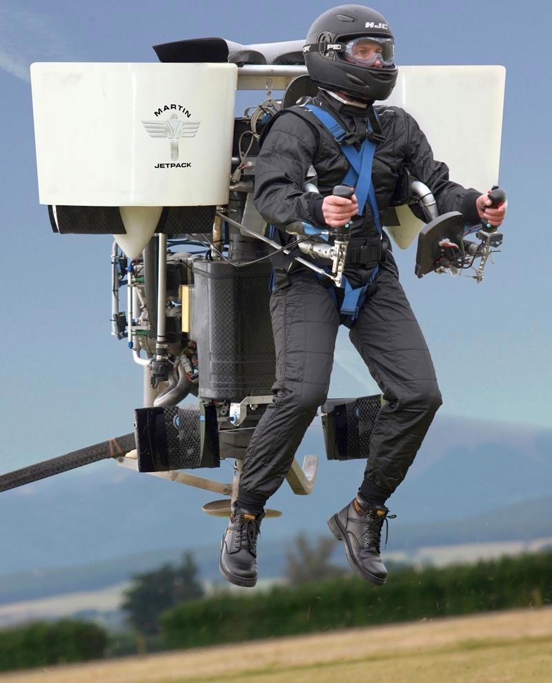 Относительно разумные средства полёта стали появляться, когда стали использовать другие варианты двигателей. Стало возможным обойтись в качестве топлива даже обычным бензином или дизельным топливом. Одним из таких устройств стал «Martin jetpack»: