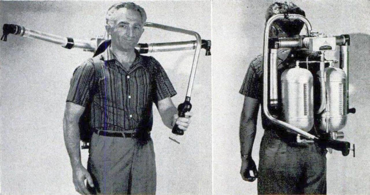 Эта штука теоретически могла поднять человека в воздух на 28 секунд. Управление этим жилетом было на редкость неудобным. Дело закончилось стендовыми испытаниями. Военные сказали «фи» и денег больше не дали.
