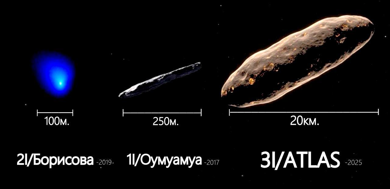 В хронологической последовательности это 1I/ʻOumuamua, 2I/Borisov и 3I/ATLAS.