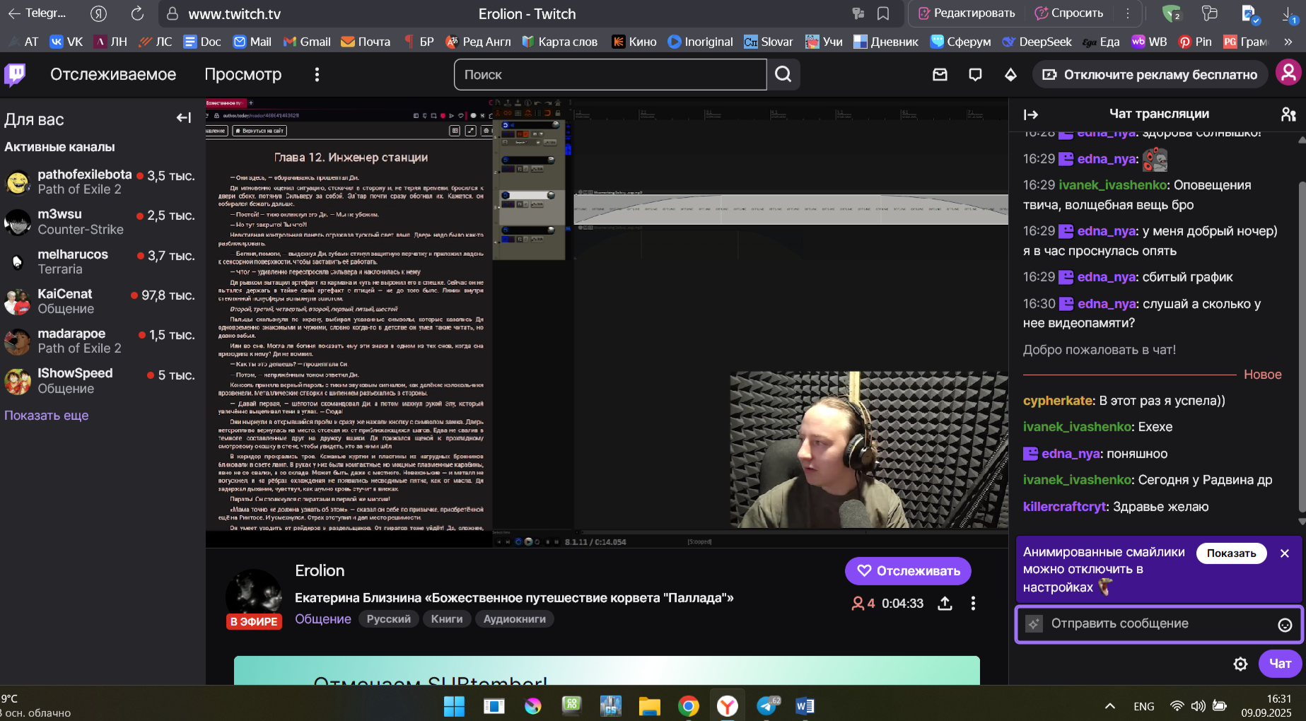 Максим Полтавский провел два стрима, на которых он дочитывал "Божественное путешествие корвета "Паллада" в прямом эфире, и я даже не пропустила финальный. Два с половиной часа провела буквально в гостях у чтеца. Посмотрела на то, как он работает, задала вопросы про программу, про студию, про микрофон, про кота и собаку, похихикали с его слушателями над смешными моментами))) Это было очень круто!