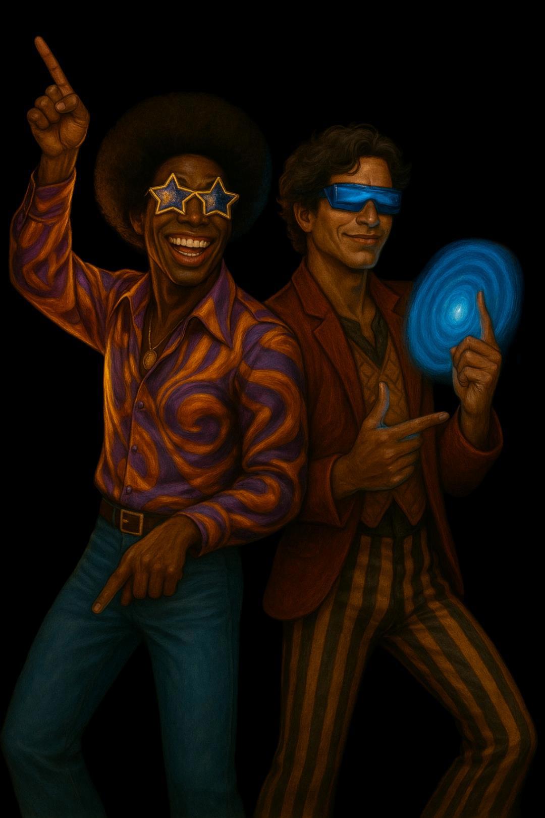 Четвёртыми выделяю Мистера Диско и Хранителя Меркурия. Они любят какие-то необычные очки и ритмичную движуху (планета Меркурия аж вокруг Солнца наяривает быстрее прочих планет) и танцполы. Думаю, справедливо, чтобы у Хранителя Меркурия в человеческом облике тоже была именно тёмная кожа — он же ближе всех к Солнцу.