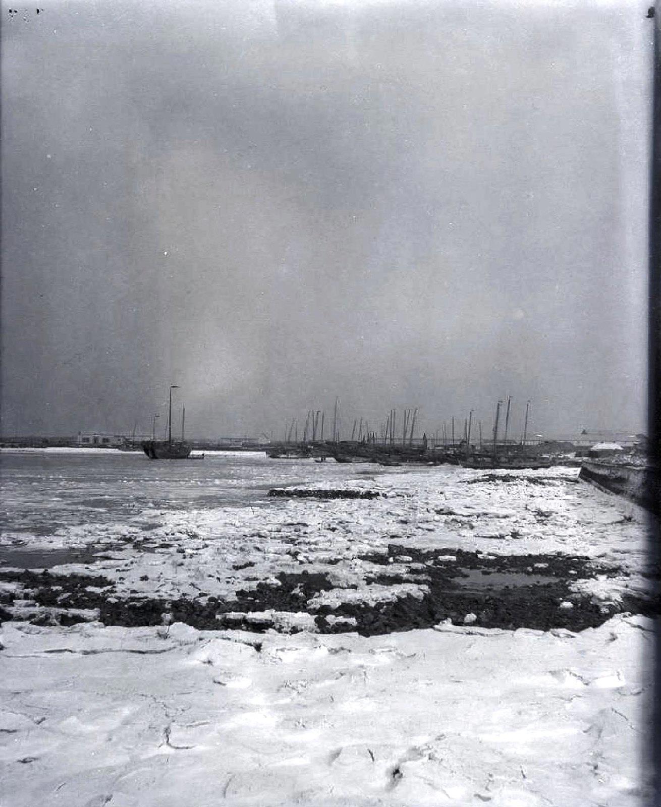 Замерзшая бухта и лодки. А ведь хотели незамерзающий порт.